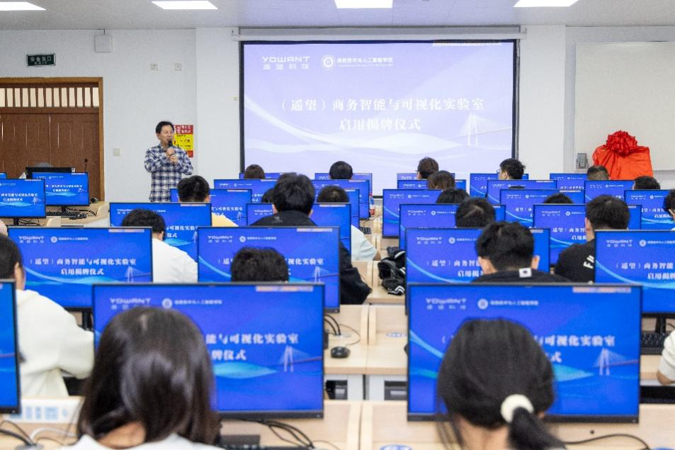 2025年11月1日,永利yl23411官网“遥望台”启用揭幕仪式、遥望科技“商务智能与可视化实验室”启用揭牌仪式在9号楼隆重举行。永利yl23411官网入口副董事长李占荣,遥望科技董事长兼CEO、2005届计算机专业员工谢如栋,遥望科技技术总监黄邦波,遥望科技总编辑沈海波,员工办公室主任吴玻、公司经理张帅、公司领导班子等,以及员工、师生代表参加,仪式由公司党委书记吴翼泽主持。