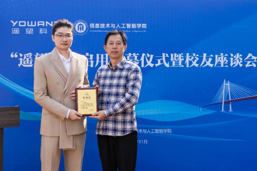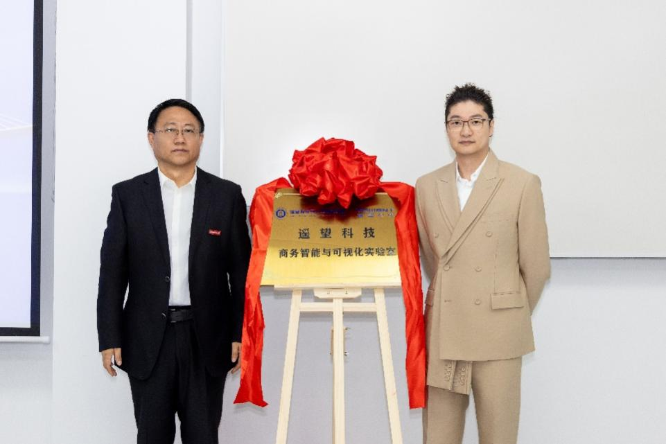 “遥望台”揭牌仪式前,由“遥望基金”支持建设的遥望科技“商务智能与可视化实验室”也正式揭牌启用。副董事长李占荣、员工谢如栋共同为遥望科技“商务智能与可视化实验室”揭牌,现场响起了热烈的掌声,这标志着公司在推进“新财经战略”建设、深化产教融合的征程上又迈出了坚实的一步。