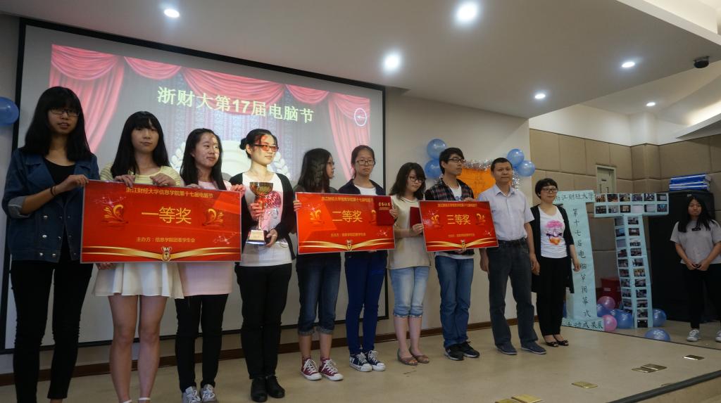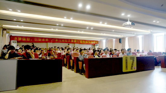 首先由配音大赛一等奖获得者现场配音《冰雪奇缘》。灵动的声音切实还原了电影人物,带动了现场的气氛。紧接着对本届电脑节系列活动中获得奖项的同学进行现场表彰。随后是优秀成果现场展示,分别有浙江省第十四届“挑战杯”中取得优异成绩的亮点团队和聚信息团队以及“其乐”校园团队主创吴姚迪学长进行分享。活动的最后以一段优秀选手采访视频作为本届电脑节的一个圆满结点。