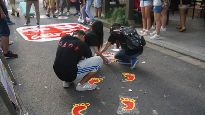 除了常规的场地布置、新生手册、文化衫外,公司还在迎新形式上推陈出新,营造了独特的文化氛围。志愿者们不仅身着“信息力量”字样的衣服,而且在脸上也下了一番功夫,醒目的红色logo“信息力量”,给新生们和家长们留下了深刻的印象,在报道完后,每位新生都被邀请在场地前的签名板上签上自己的姓名并与陪同来得家长合影,选取自己喜欢的、印有财大美景以及学长学姐寄语的明信片,留下自己人生最难忘回忆;除此以外,现场更有无人机缓缓飞起,为新生入学助力!
