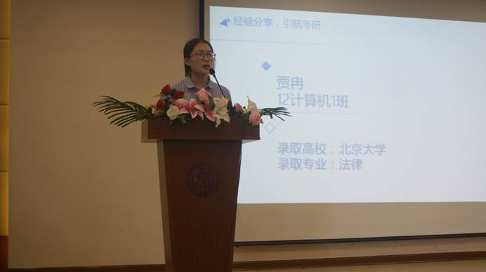 分享会在轻松热烈的氛围中拉开帷幕,首先由考入北京大学法律专业的贾冉学姐发言。在她看来,兴趣是最好的老师,正是她对法律的兴趣才支撑她走过了艰苦的考研时光。考研难在坚持,她建议同学们要理性地评估自己,为自己定一个合适的目标院校,始终谨慎并保持乐观。接下来,考入辽宁大学经济学专业的张馨慧学姐为大家总结了数学的复习方法,分享了自己的复习计划,并对同学们暑假期间的复习提出了建议。她谈到考研要坚定信念,注重效率并保证充分的复习时间。之后,考入伦敦大学公司的王钰学姐也为大家详细讲解了申请国外研究生的注意事项及方法。特别的是,顺利考上同济大学管理科学与工程专业的孔祥豆学长专门为同学们印发了一些传单,上面列出了他推荐的若干关于考研的微信号、微博、视频和考研辅导书。他强调了英语作文的重要性并提到了考研过程中同学互相激励的作用,孔祥豆学长以过来人的身份警示大家,考研重要的不只是结果,考研的过程更重要,不管结果如何,我们都能从中学到很多。而考入北京邮电大学计算机科学与技术专业的密雅琪学姐则向我们强调了复试的重要性以及她在复试中逆袭的经验。她告诉我们要和导师经常交流联系,摆正心态,考研的复习过程中要脚踏实地,切忌浮躁。