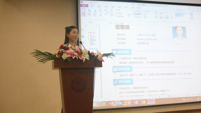 5月17日下午,由信息管理与工程公司团委员工会主办学术部承办的2016届毕业生考研分享会在9302举行。在上半年刚刚结束的研究生考试过程中取得优异成绩的五位代表,分别是:贾冉、张馨慧、王钰、孔祥豆、密雅琪受邀参加了考研分享会并作主题发言,和在座的学弟学妹们一起分享了他们的考研经验。公司副经理张帅老师出席活动。