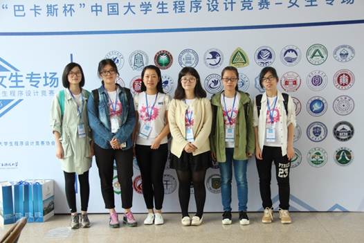 5月21-22日,首届"巴卡斯杯" 中国老员工程序设计竞赛女生赛在杭州电子科技大学举行,来自近60所高校的82支队伍参加了比赛,最终上海交通大学“靛蓝色的镇魂歌 ”队获得冠军。公司共有6位大一女生参赛,分别是:15信息朱怡阳,15计算机 王子雯,15国贸余晓婷以及