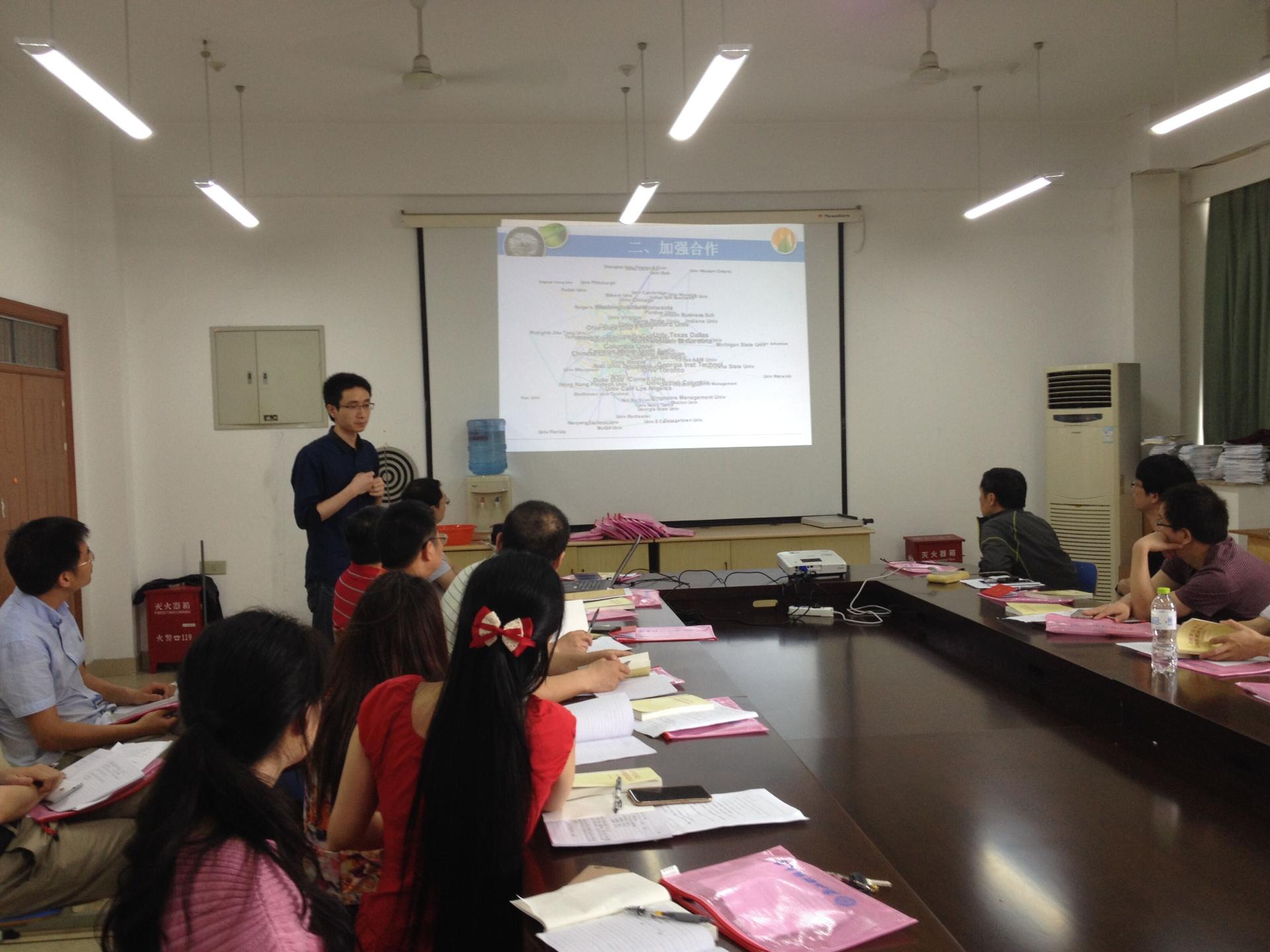 随后党员代表余德建老师通过援引管工学科Top期刊论文发表数据,从学科发展现状、国内外合作、学科前沿与研究生课程设置等方面进行了详细的汇报。他认为明确学科定位、优化国内外合作机制、紧跟学科研究前沿、科学设置研究生课程对公司学科发展具有重要推动作用。