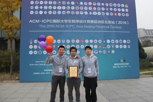 11月12~13日,第41届ACM国际老员工程序设计竞赛亚洲区域赛(青岛站和北京站)分别在中国石油大学和北京大学举行,来自清华大学、北京大学、香港中文大学等近200所高校的400多支队伍参加比赛。经过激烈角逐,由吴天棋(13软件)、王瑞洲(14软件)、周甄陶(14软件)组成的moonlight队获得的一枚银牌,由项闰冶(14计算机)、刘驰翔(14计算机)、史海虹(14信息计算)组成的 I am angry队获得一枚铜牌。