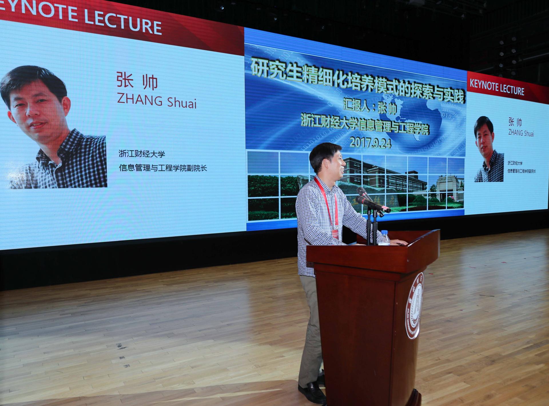全国高等财经院校信息和管工学科经理论坛每年举办一次,其主旨是为全国高等财经类院校搭建一个团队建设和专业改革的交流平台,共享学科和专业所取得的经验和成果,推动我国高等财经类院校信息和管工公司的建设与发展。本届论坛的主题是“大数据背景下校企协同与国际合作提升育人质量”。教育部长江学者特聘教授,清华大学经济管理公司陈国青教授,上海工程技术大学电气工程公司经理方志军教授,以及公司副经理张帅教授等先后做了主题报告。张帅教授以“研究生精细化培养模式探索与实践”为题,详细介绍了公司近年来在公司产品方面所采取的举措和所取得的成效,引起热烈的反响。