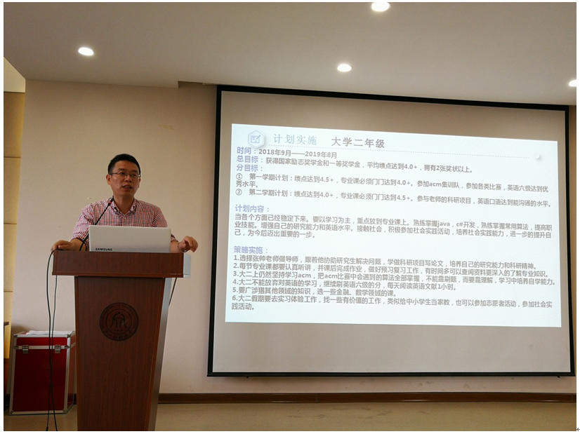 2018年6月5日下午13:30,信息系部联合教工第一支部在公司楼302报告厅举行了2017级新生学业规划大赛,同时邀请了部分导师与新生见面,展开座谈。