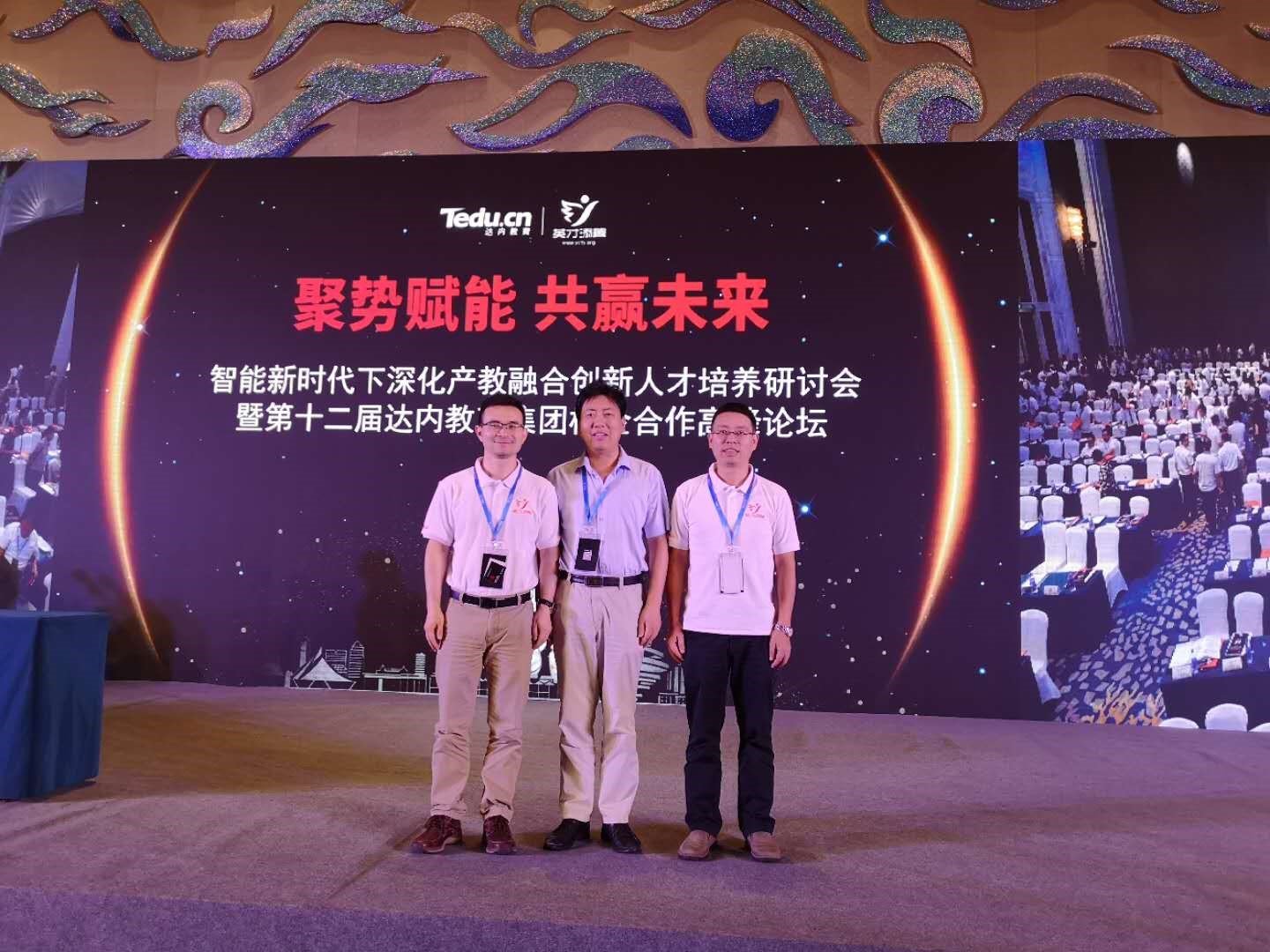 2018年8月14日,教育部公司规划建设发展中心指导,达内教育集团主办的“智能新时代下深化产教融合创新人才培养研讨会暨2018年第十二届达内集团校企合作高峰论坛”在山东青岛隆重召开。公司教务处副处长石向荣、信工公司副经理陈远高老师等参加了会议。会上教育部公司规划建设发展中心公布了首批“AI+智慧学习”共建人工智能公司项目试点公司名单,教务处副处长石向荣老师代表公司在入选院校的名单卷轴上签名。