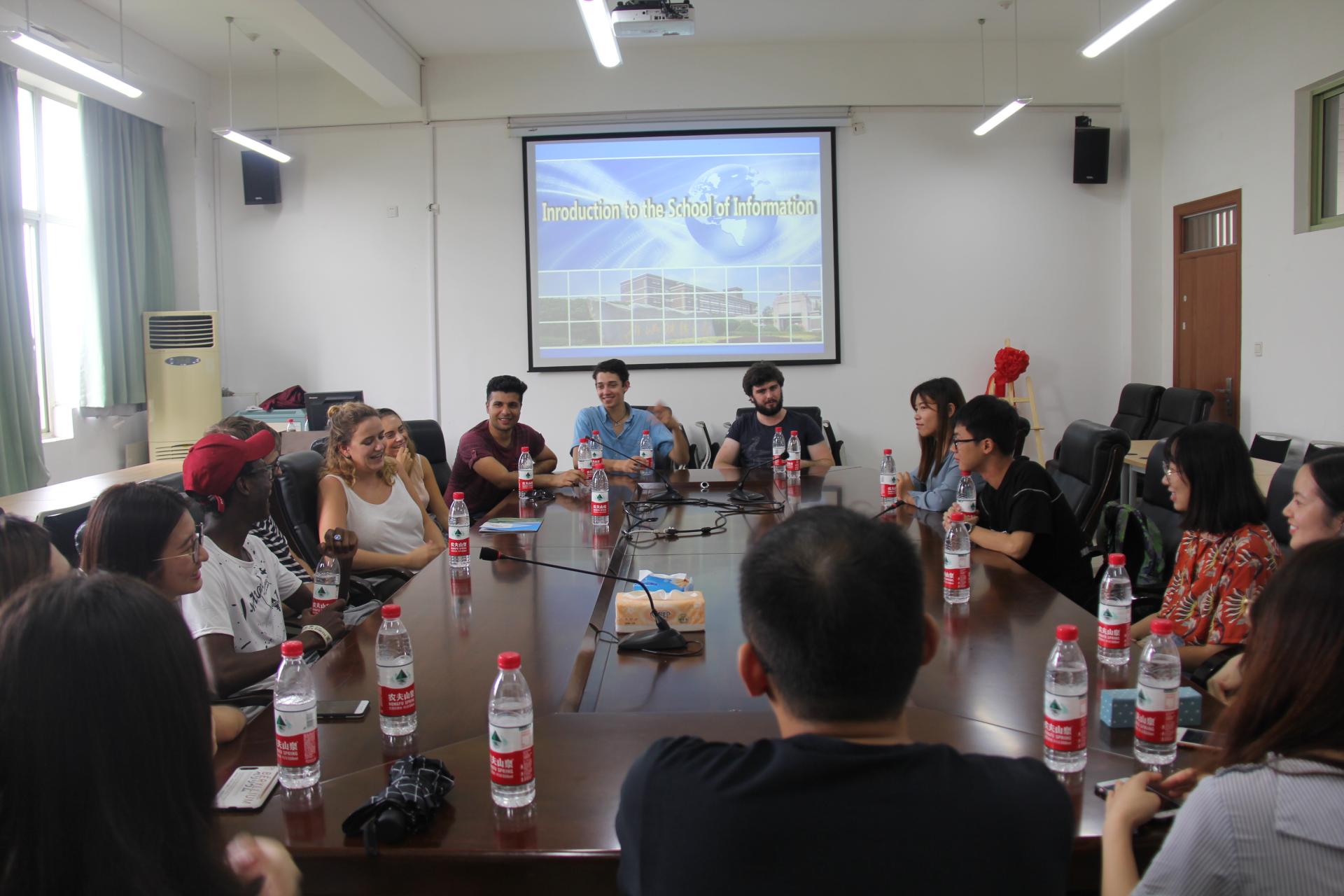 9月18日,英国剑桥大学圣约翰大学师生一行来公司交流。交流期间,公司首先向来访的客人介绍了公司的办学历史、本科专业、硕士点、科研成果、实验室、合作交流等,随后双方员工就专业方向,学科竞赛,科研项目、业余爱好、中国的传统文化等展开了深入的交流。