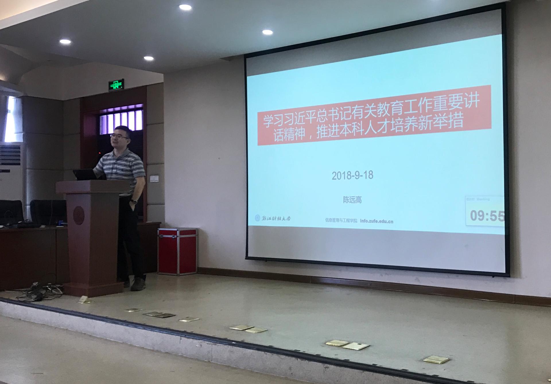 9月18日下午,信工公司副经理陈远高老师给公司全体教职工做了以“学习习近平总书记有关教育工作重要讲话精神,推进本科人才培养新举措”为主题的党课。