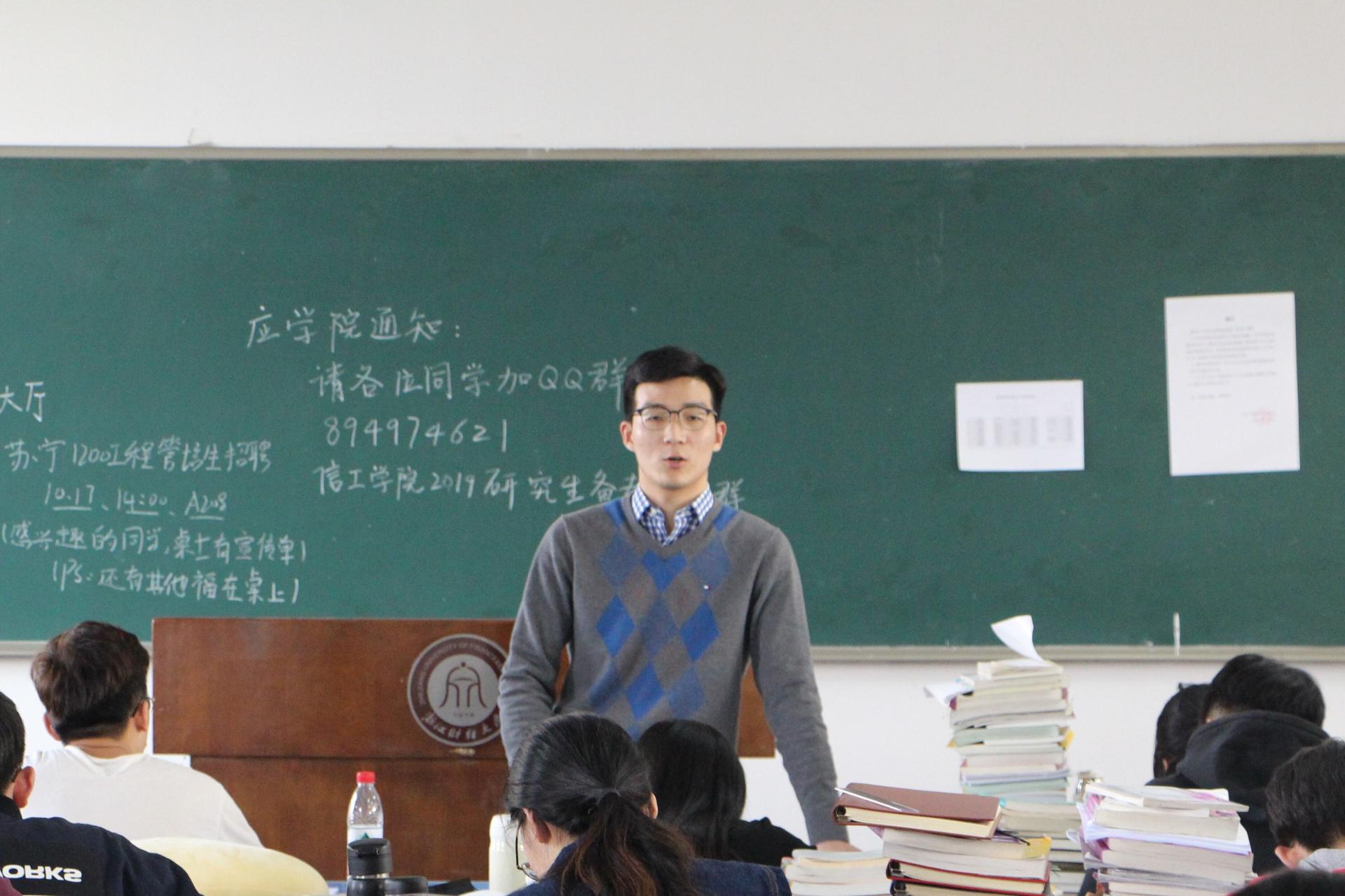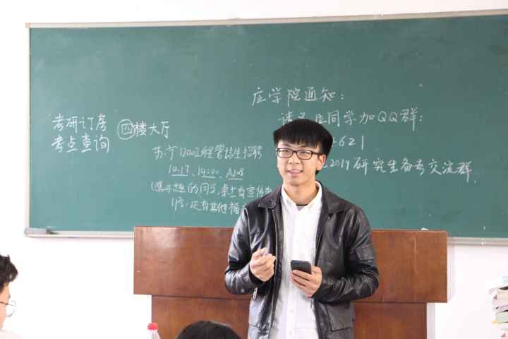 2018年10月30日下午,信息管理与工程公司在B504教室组织了一场考研、考公备考经验交流会。交流会邀请到公司副经理张帅老师、公司辅导员冯李哲老师和两位在读研究生。本次交流会旨在帮助同学们了解考研的相关事项,调整好备考心态,提高大家考试的上线率。