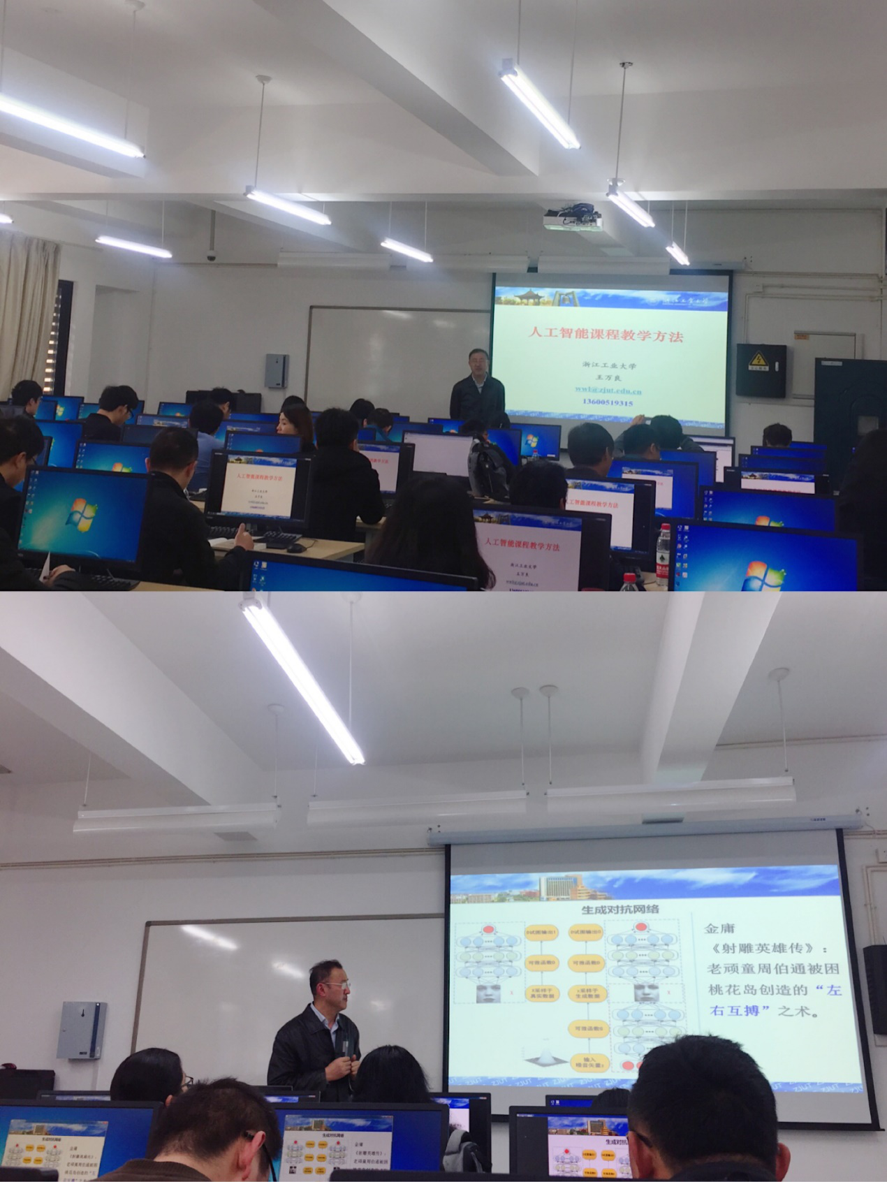 王万良教授首先以自己多年的教学经验给大家详细介绍了人工智能课程教与学方法,并深入浅出的讲解了目前人工智能领域的一些核心算法,包括:模拟生物进化的进化算法、模拟生物群体行为的群智能算法、模拟神经系统的人工神经网络算法及深度学习等,同时还分享了深度学习的最新研究进展。同时,王教授对目前人工智能教学存在的误区及问题做了一一解答,增强了大家人工智能教学的信心。
