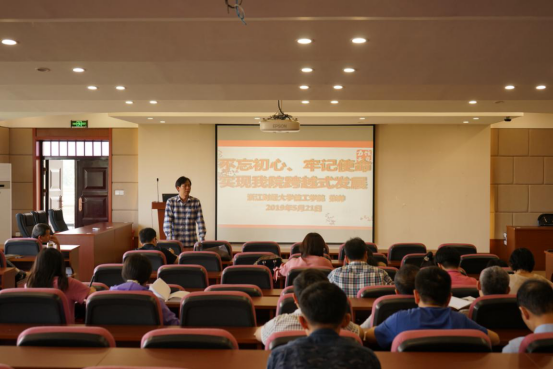 “不忘初心、牢记使命”主题教育是在全党范围内开展的主题教育活动,是推动全党更加自觉地为实现新时代党的历史使命不懈奋斗的重要内容。张帅老师指出,“不忘初心、牢记使命”不是停留在口头的标语,而是我们应该贯彻和执行的指导思想,是党的十九大精神的重要举措,是未来发展的重要基础。作为高校教师,我们共同的初心和使命是立德树人,培养优秀的社会主义建设者和接班人。张帅老师先后从教学、科研和学科三个方面指出我们公司取得的成果和其中的不足,并指出公司今后发展的目标和解决措施,参会教职工表示很受启发并且有了更加清晰明确的方向。