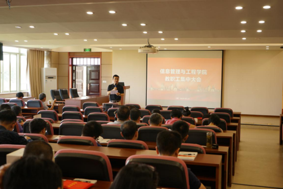 5月21日下午,信工公司在9302组织召开教职工集中大会暨主题党课。本次党课以“不忘初心、牢记使命,实现公司跨越式发展”为主题,张帅老师主讲,全院教职工参加并认真学习。
