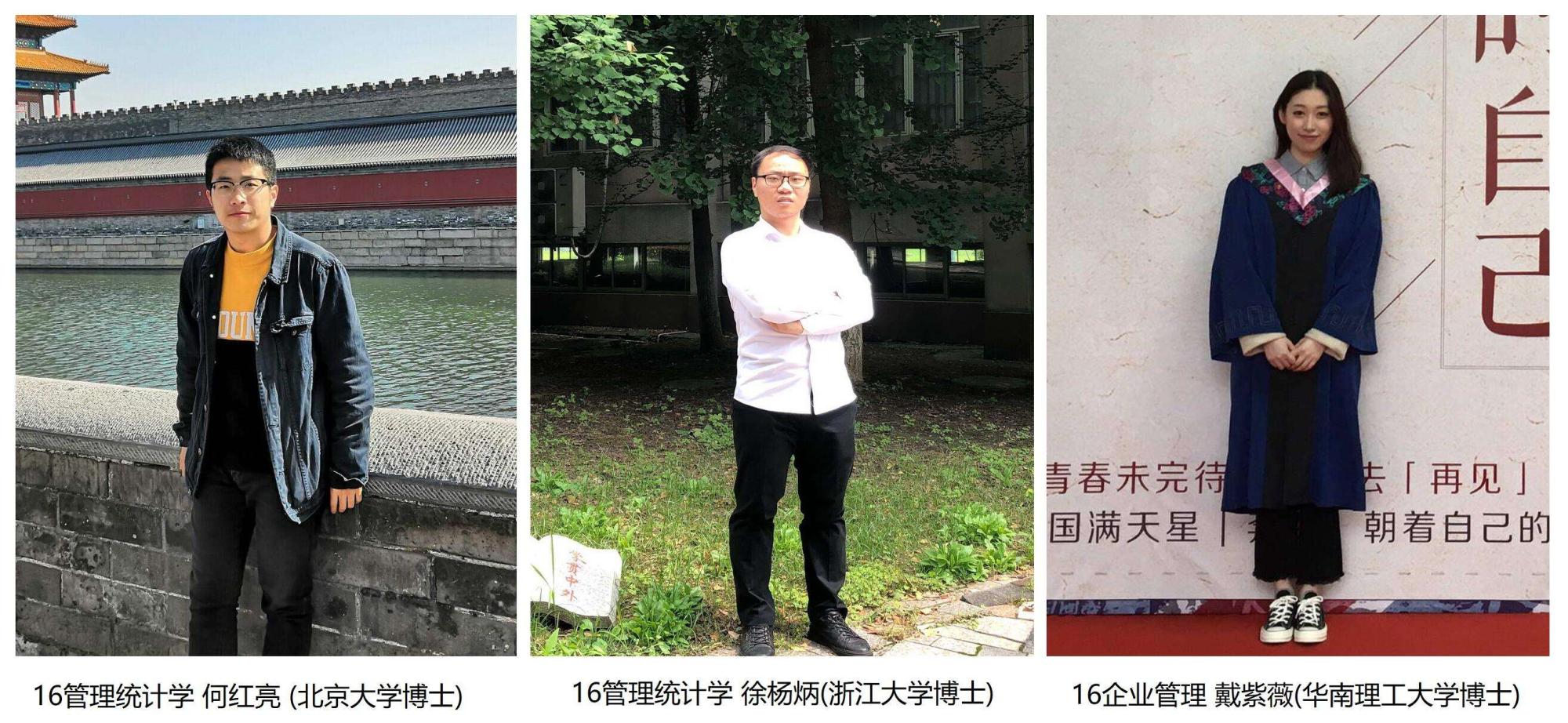 近日,各高校陆续公布了2019年博士研究生招生录取名单。公司16级硕士生何红亮、徐杨炳、戴紫薇三位同学成功考取了北京大学、浙江大学、华南理工大学等985名校的博士研究生,考博率达到30%。
