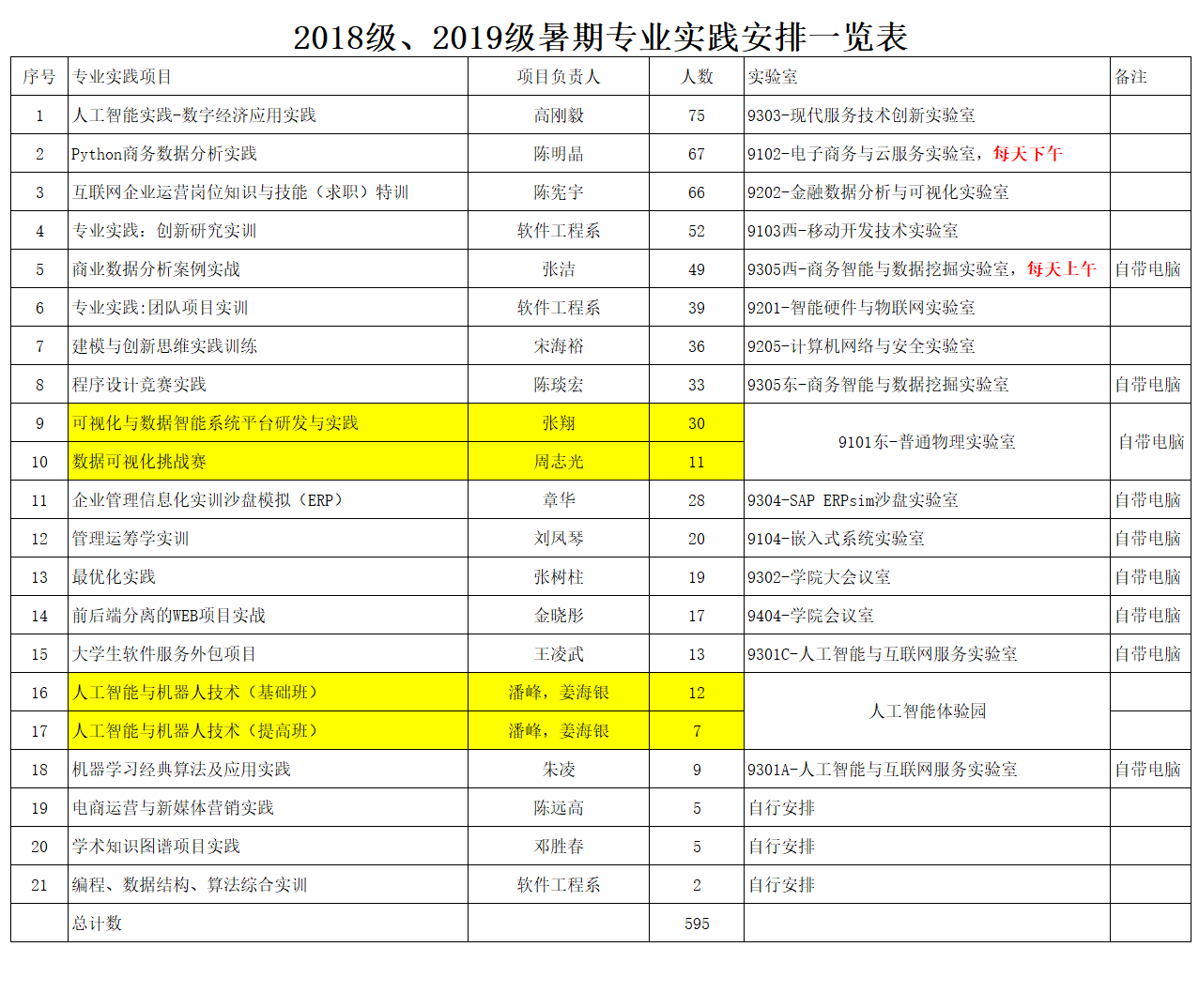 (4)因短学期公司2018、2019、2020级共有840人,将在公司楼各个实验室进行专业与学科实践,部分空间的场地还是比较小,需要同学们相互体谅、相互配合,希望老师们加强管理与指导。