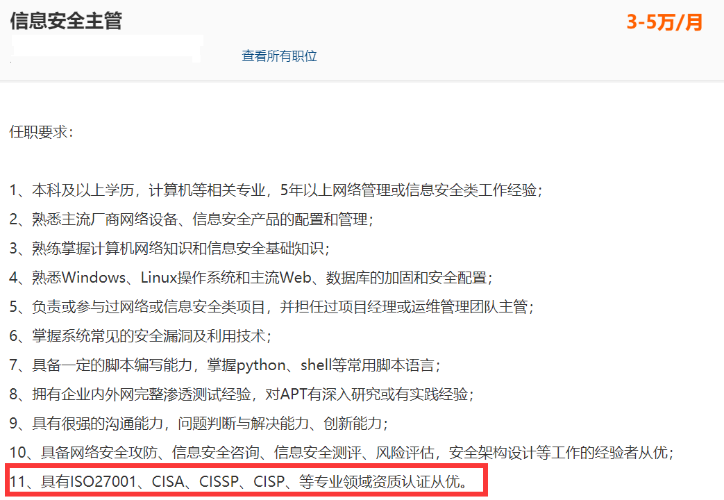 现今,随着信息技术的发展和应用,信息系统审计在各个行业都有着很大的需求,随意点开招聘网站浏览,就能看到职业招聘中拥有CISA证书的人员是具有强大的择业优势。