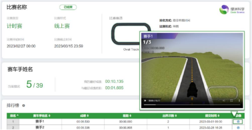 个人参赛,参赛选手需要在平台上建立并训练无人车模型,完成指定赛道的自动驾驶,省赛在虚拟环境下运行(如下图所示),全国赛将使用官方提供的真车和真赛道。
