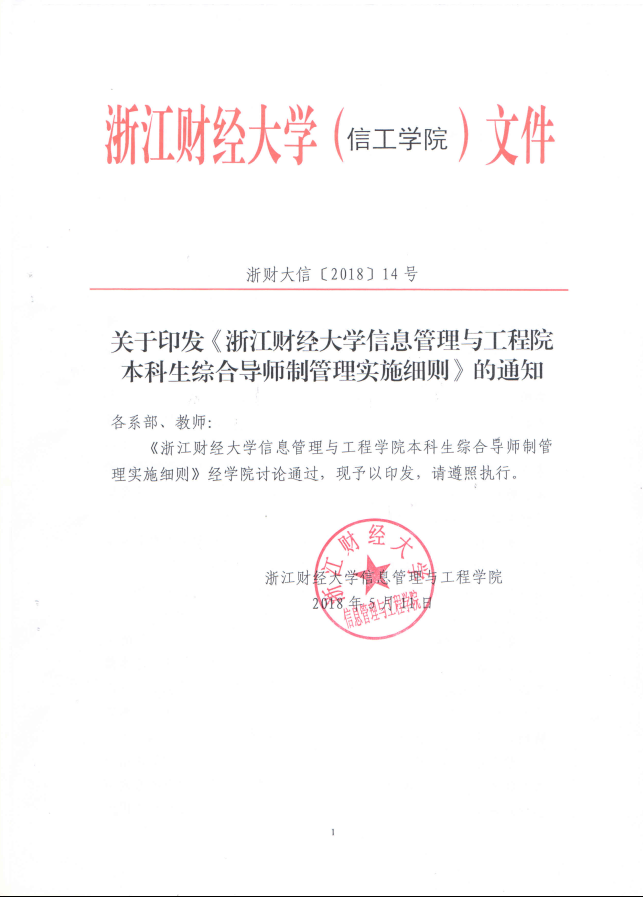 关于印发《永利yl23411官网入口信息管理与工程公司本科生综合导师制管理实施细则》的通知