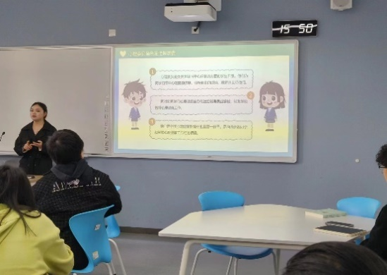 接着,史老师进一步地阐释了“什么是心理委员”。老师指出,心理委员是公司心理健康系统中的重要一份子,是沟通班级同学和公司心理健康工作组的桥梁,要当好“传达者”、“支持者”、“排雷兵”,向本班员工宣传心理健康知识,主动关心同学并与他们保持良好的人际关系,及时了解班级同学的心理健康状况及需求,向心理老师或辅导员反馈,同时牢记自己的工作原则,更好引导同学们走出心理阴霾,逐步养成乐观、积极、开朗的心理状态。