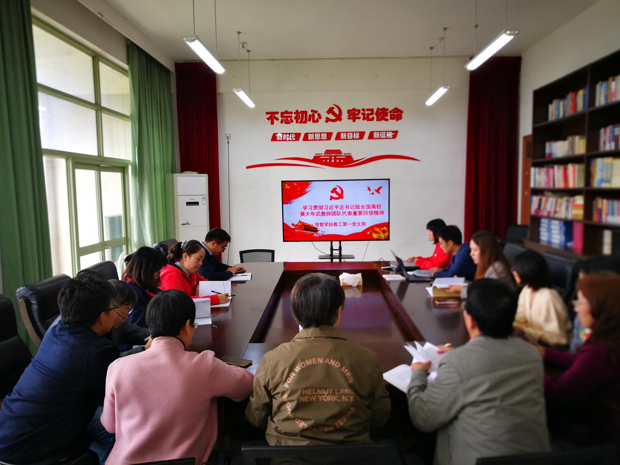 10月21日,永利yl23411官网教工第一党支部在9506会议室召开“学习贯彻习近平总书记给全国高校黄大年式教师团队代表重要回信精神”专题会议。出席会议的有永利yl23411官网经理张帅、教工第一党支部党员同志及信息系教师。会议由支部书记朱凌主持,内容包括专题学习、专题研讨与交流、以及观看优秀教师题材电影《黄大年》等。