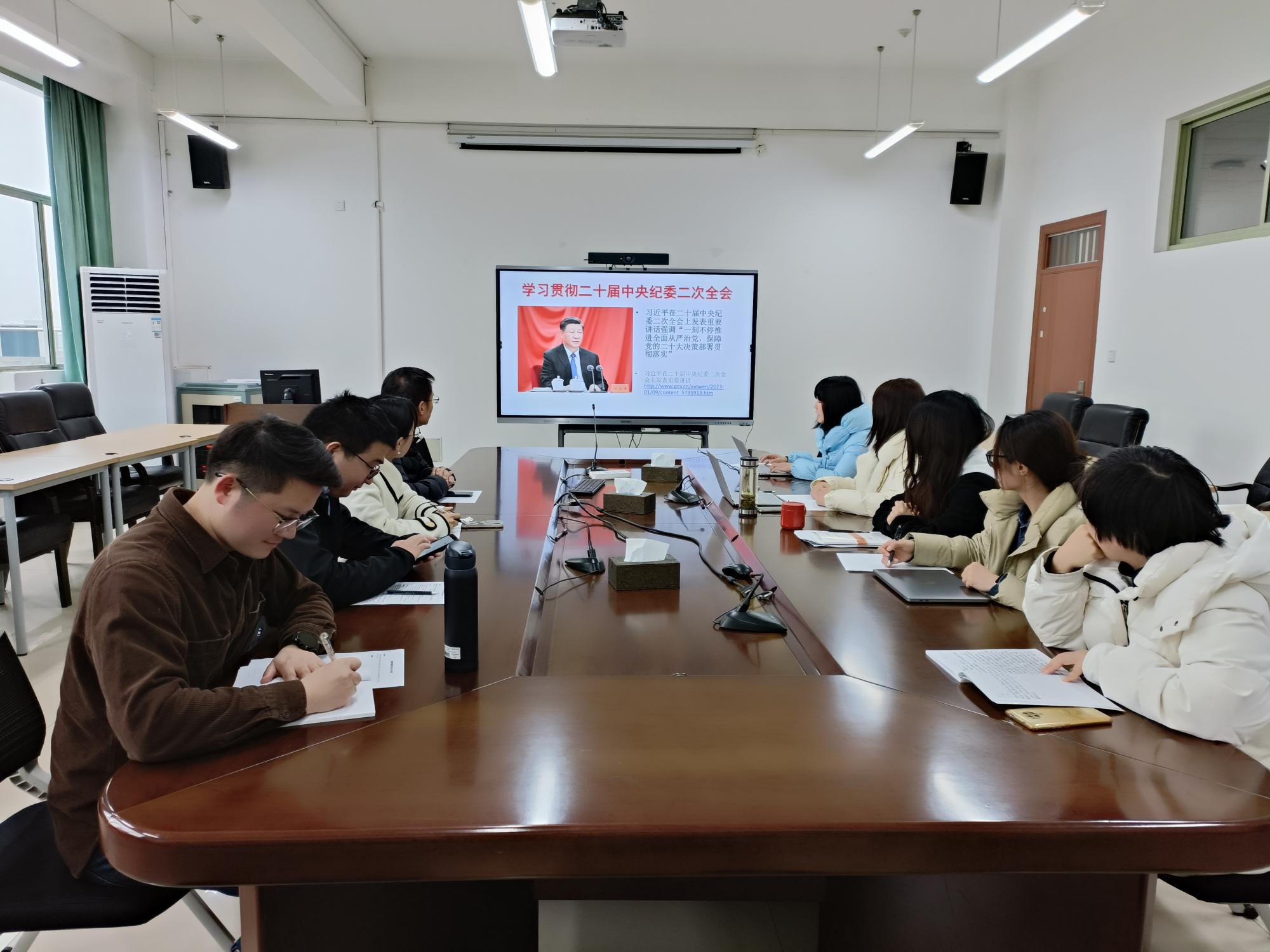 2023年2月23日,永利yl23411官网教工第一党支部在9404会议室召开《学习贯彻二十届中央纪委二次全会和省纪委十五届二次全会精神》的专题学习会。支部党员首先集体学习了习近平总书记在中国共产党第二十届中央纪律检查委员会第二次全体会议上发表的重要讲话,随后学习了省委十五届二次全会精神以及《全面贯彻落实党的二十大精神 奋力打造新时代清廉建设高地》的工作报告。