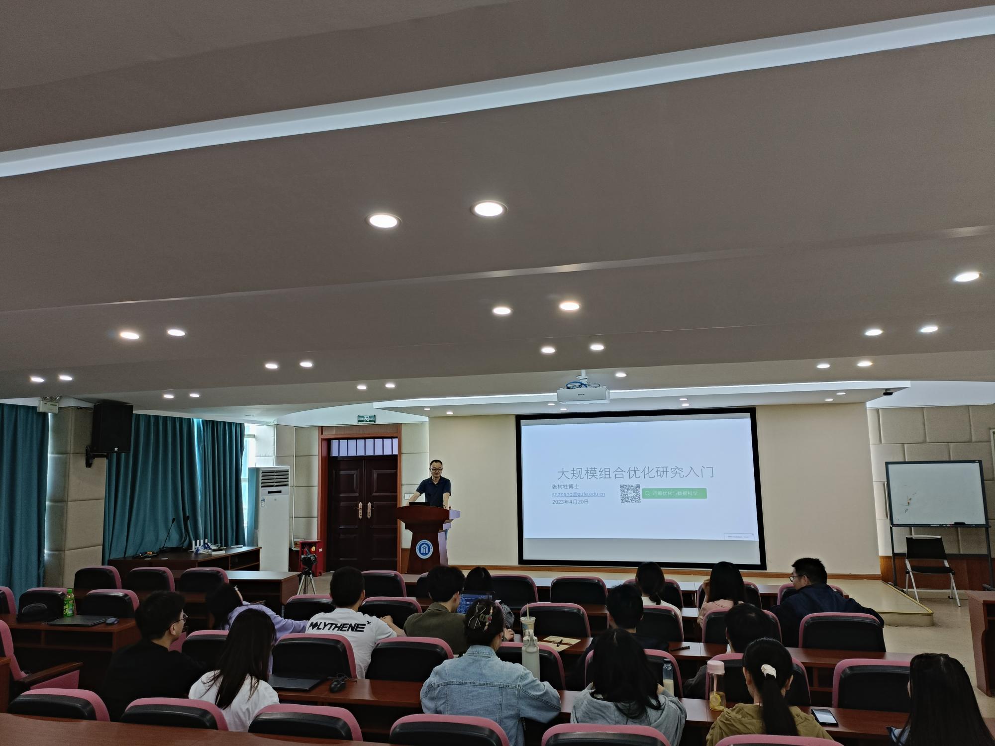 2023420日下午13:309号楼302报告厅,信息管理系与教工第一党支部联合举办了一场“博士讲堂”讲座,主讲人为信息管理系张树柱博士,主题为“大规模组合优化研究入门”,此次讲座同时也是永利yl23411官网入口“重点教学发展活动”之一。讲座吸引了公司信息管理系教师与管理科学与工程专业的硕士研究生到场学习。