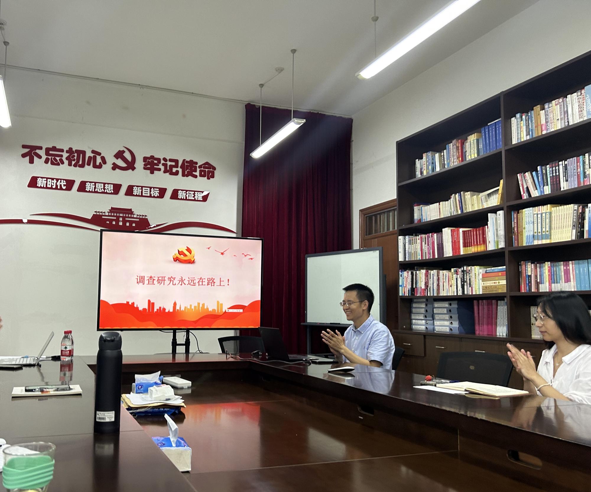 首先,隆清琦副经理带领支部老师回顾了习近平总书记履新浙江的调查研究事迹,然后,从“深刻认识在全党大兴调查研究的重要意义”、“调查研究要讲究科学方法”、“提高调查研究实效”三个方面展开讲述。