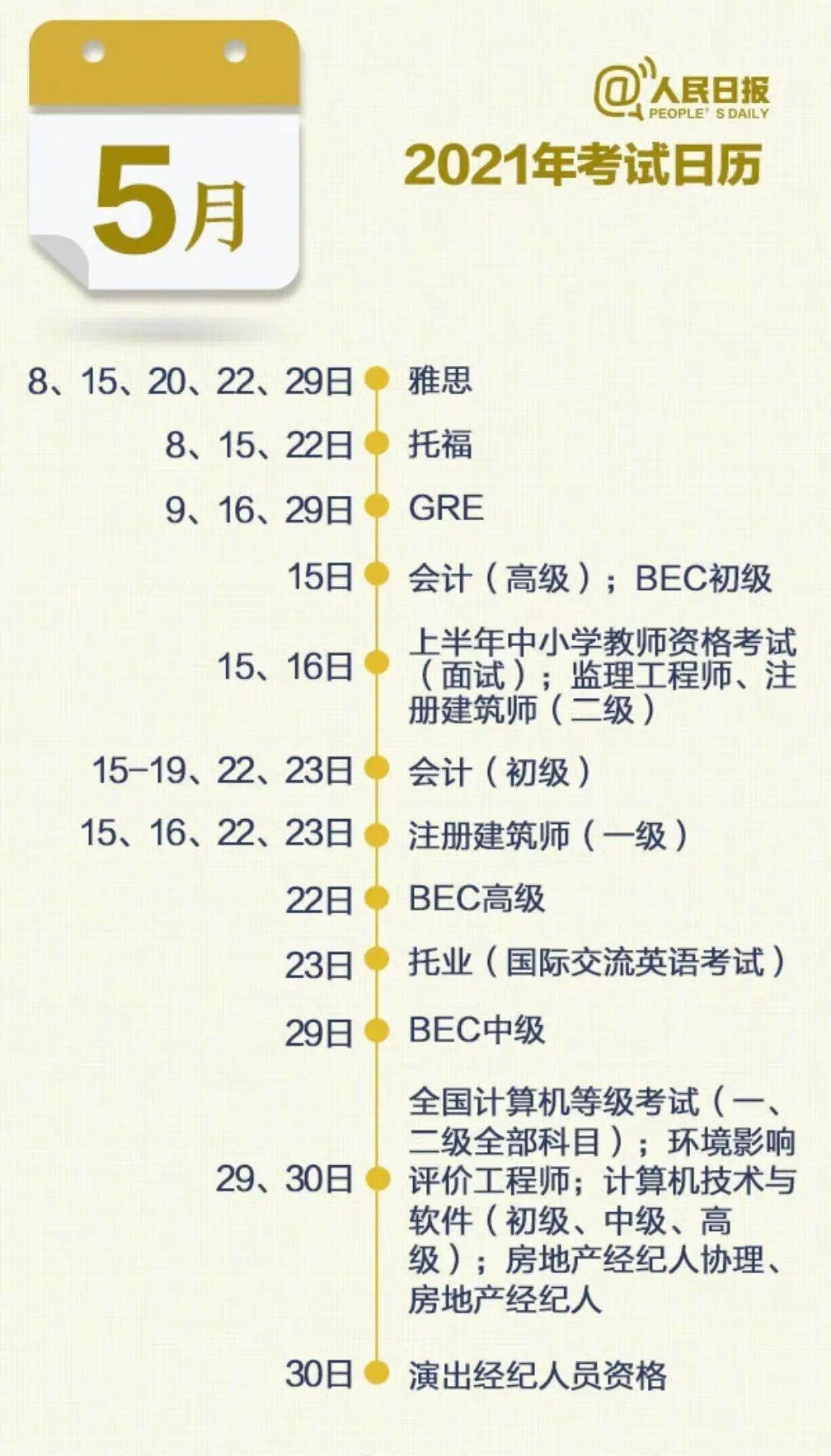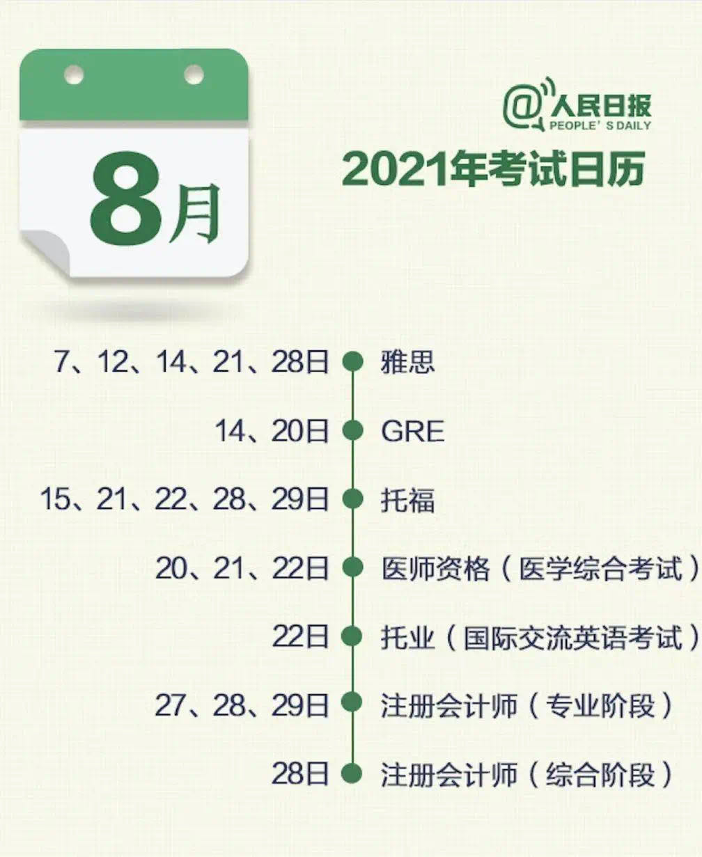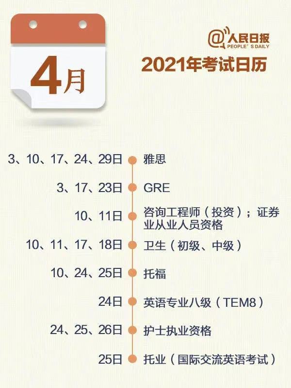 2021年考证日历
