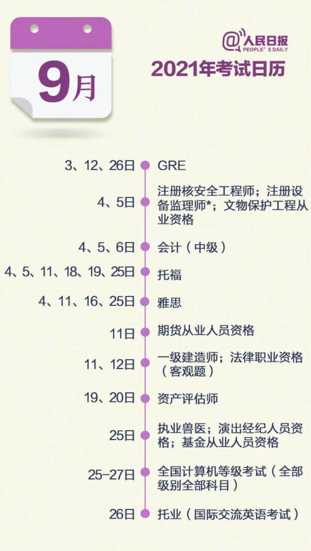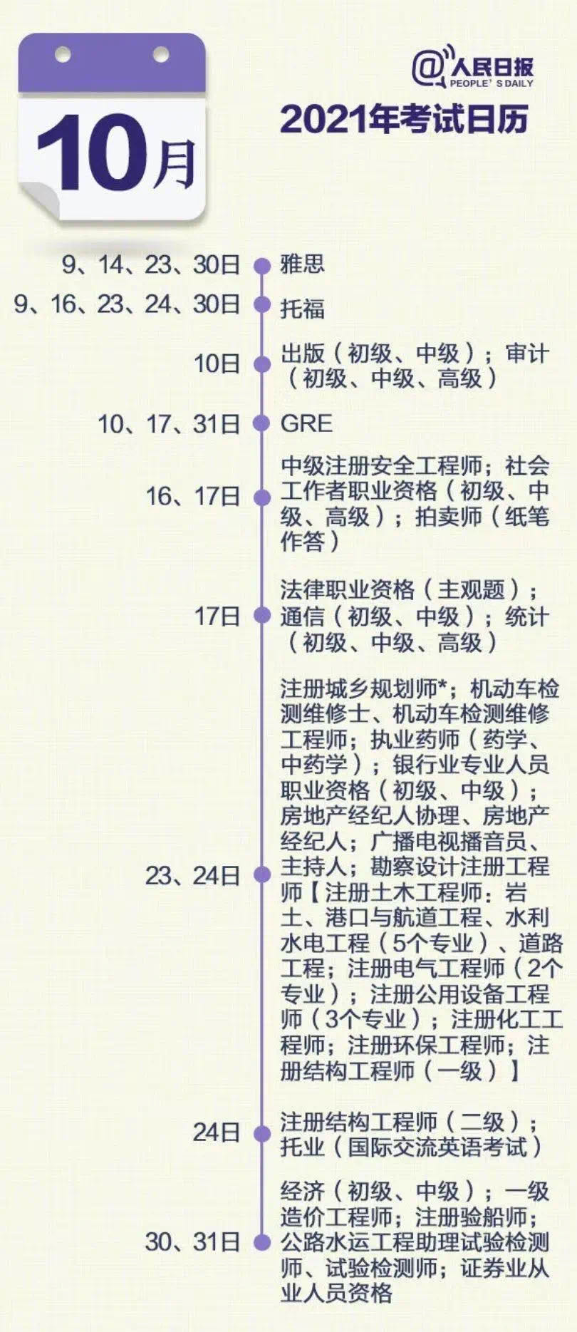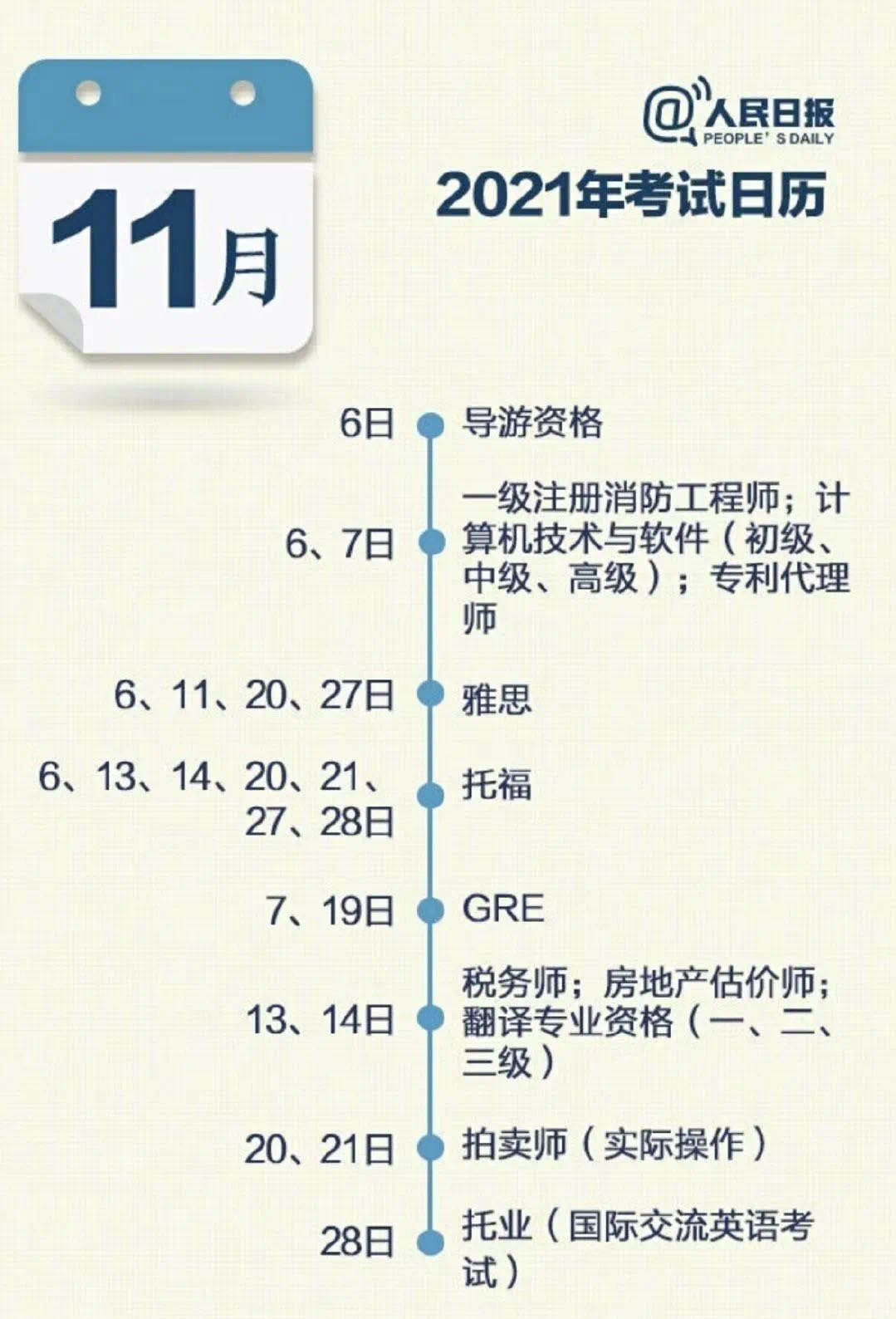 2021年考证日历