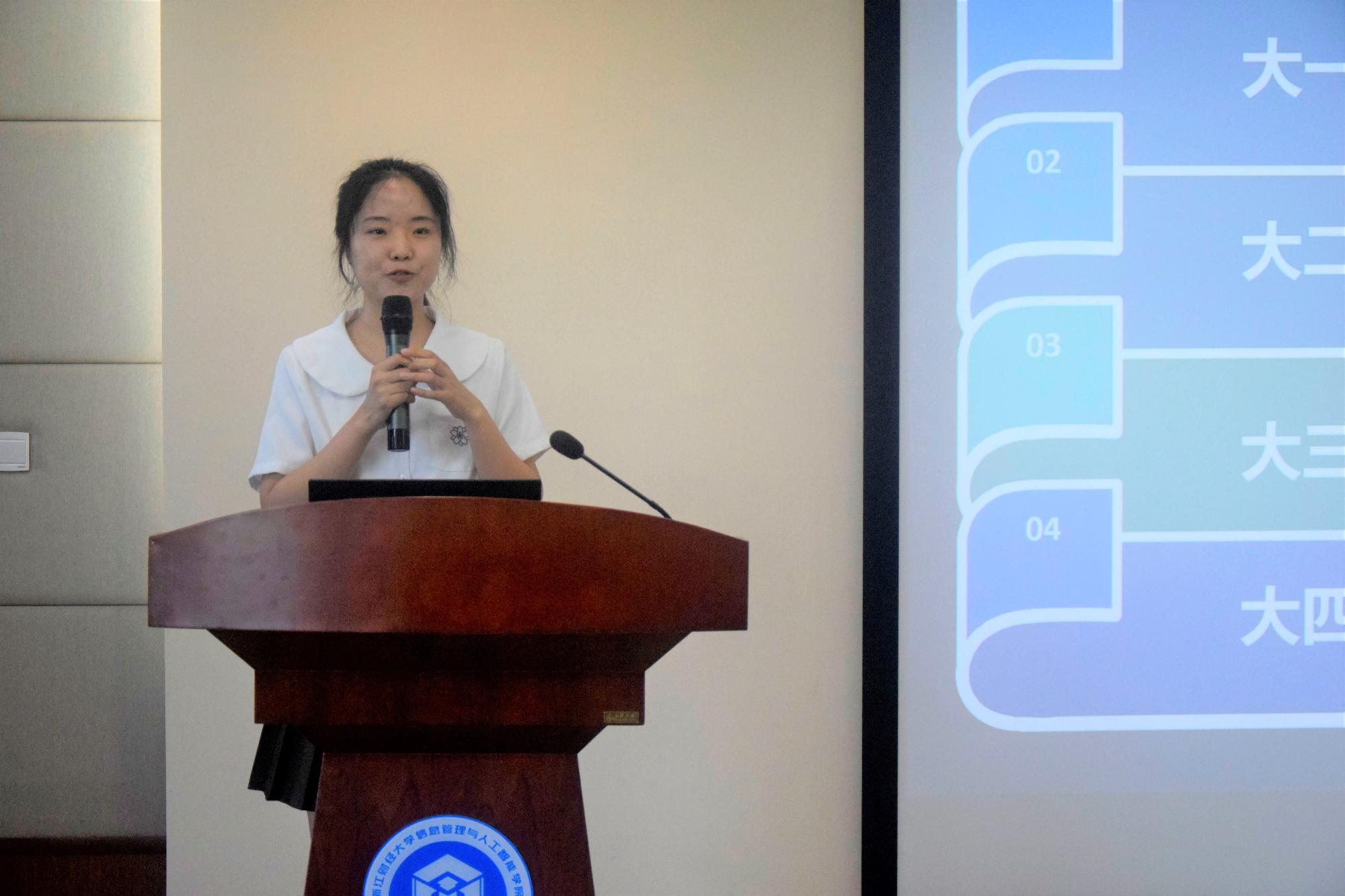 随后,19软件2韩书焕和19信息1黄倩两位同学向21级学弟学妹分享了自己大学四年的学业规划过程和考研经历。如何选择考研专业、公司和地区?何时开始备考?每个阶段可以做哪些事?从哪里获得有用的考研资讯和资料?大二大三阶段有哪些学习建议?围绕这些问题,两位同学将自己的经验倾囊相赠。