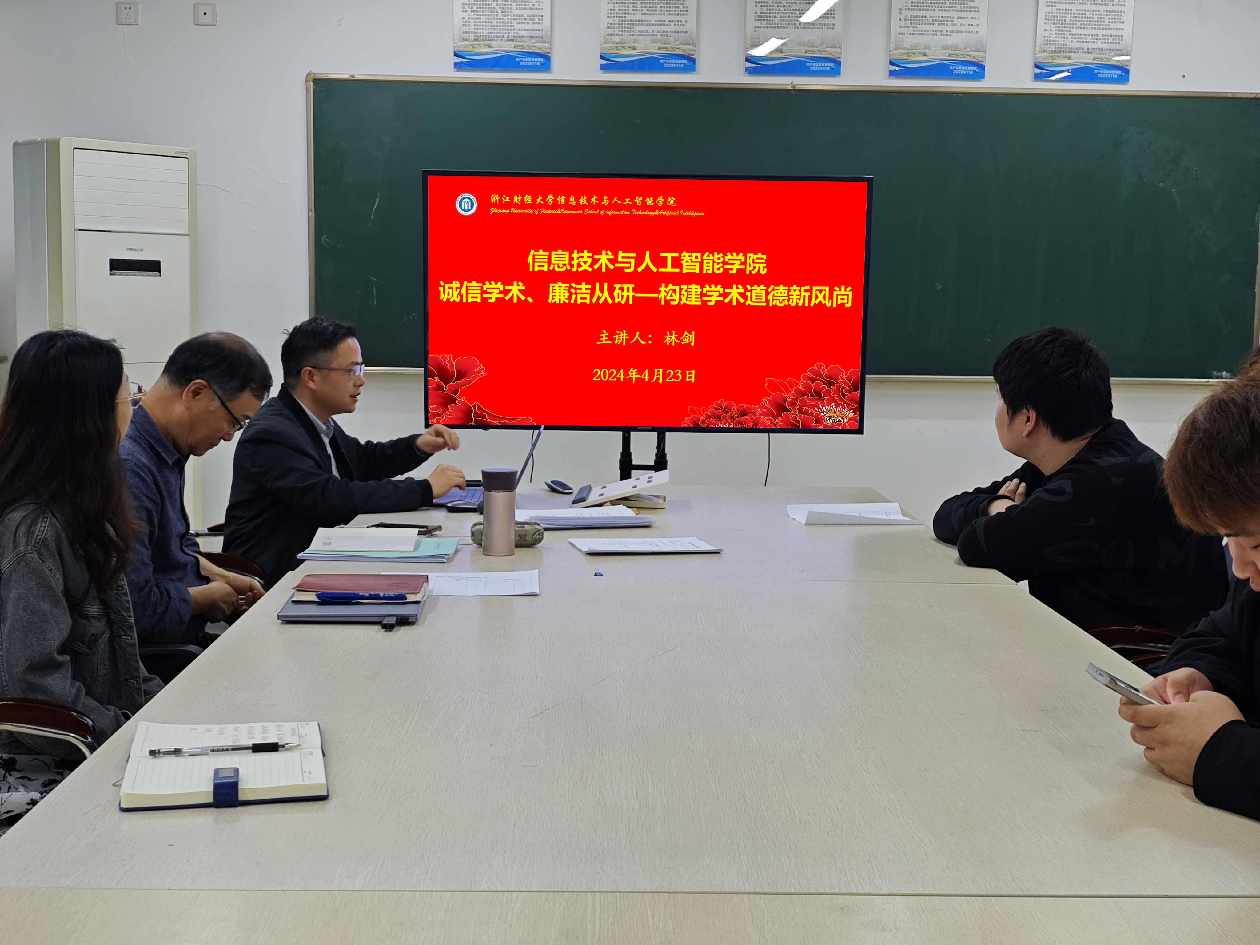 4月23日,公司在9304教室开展了“诚信学术、廉洁从研—构建学术道德新风尚”的学术诚信讲座。此次讲座由公司副经理林剑主讲,特邀教授姚建荣,研究生秘书杨天亦,辅导员吴泽勇及公司研究生参加本次活动。