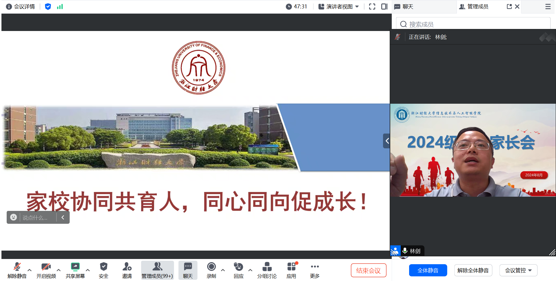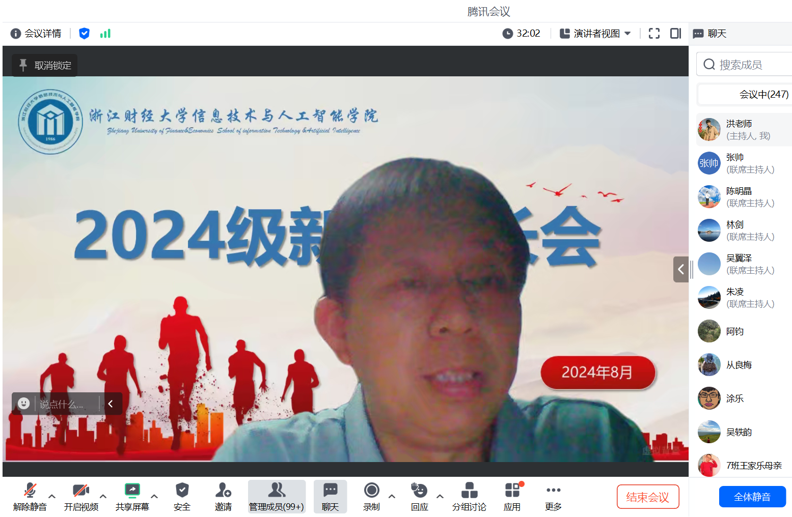 为帮助新生做好人生规划,更好地适应和融入全新的老员工活,促进家校联动,引导同学们成长成才。8月29日,2024级新生家长会在线上顺利召开,公司经理张帅,党委书记吴翼泽,副经理林剑、朱凌,党委副书记吴轶韵,经理助理陈明晶,系主任陈琰宏、涂乐,学办主任洪宝华,新生班主任、辅导员及24级新生家长近300人参加本次家长会。会议由吴翼泽老师主持。