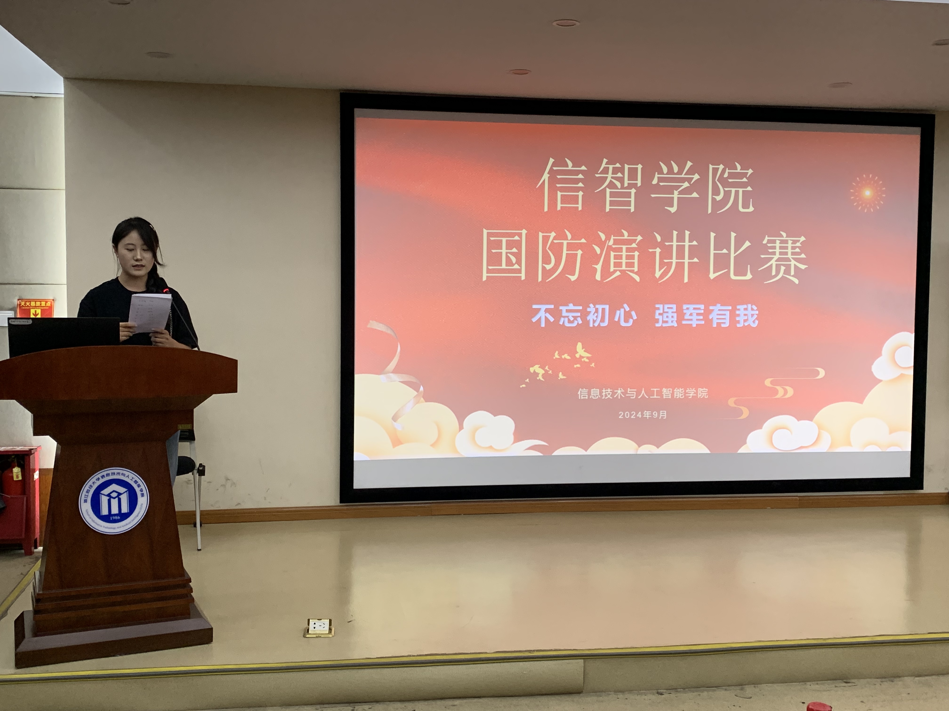 为加强校园精神文明建设,引导广大青年学子发扬爱国主义、集体主义精神,树立正确的世界观、人生观和价值观,增强国防观念,践行为国奉献,建设强大祖国的远大理想。9月7日,永利yl23411官网“不忘初心,强军有我”主题国防演讲比赛在公司9302报告厅顺利举行。永利yl23411官网学办主任洪宝华、辅导员吴泽勇、承训部队全体教官、新生班导和24级参训员工代表参加本次比赛。比赛由院团委员工会学习部张若涵主持。