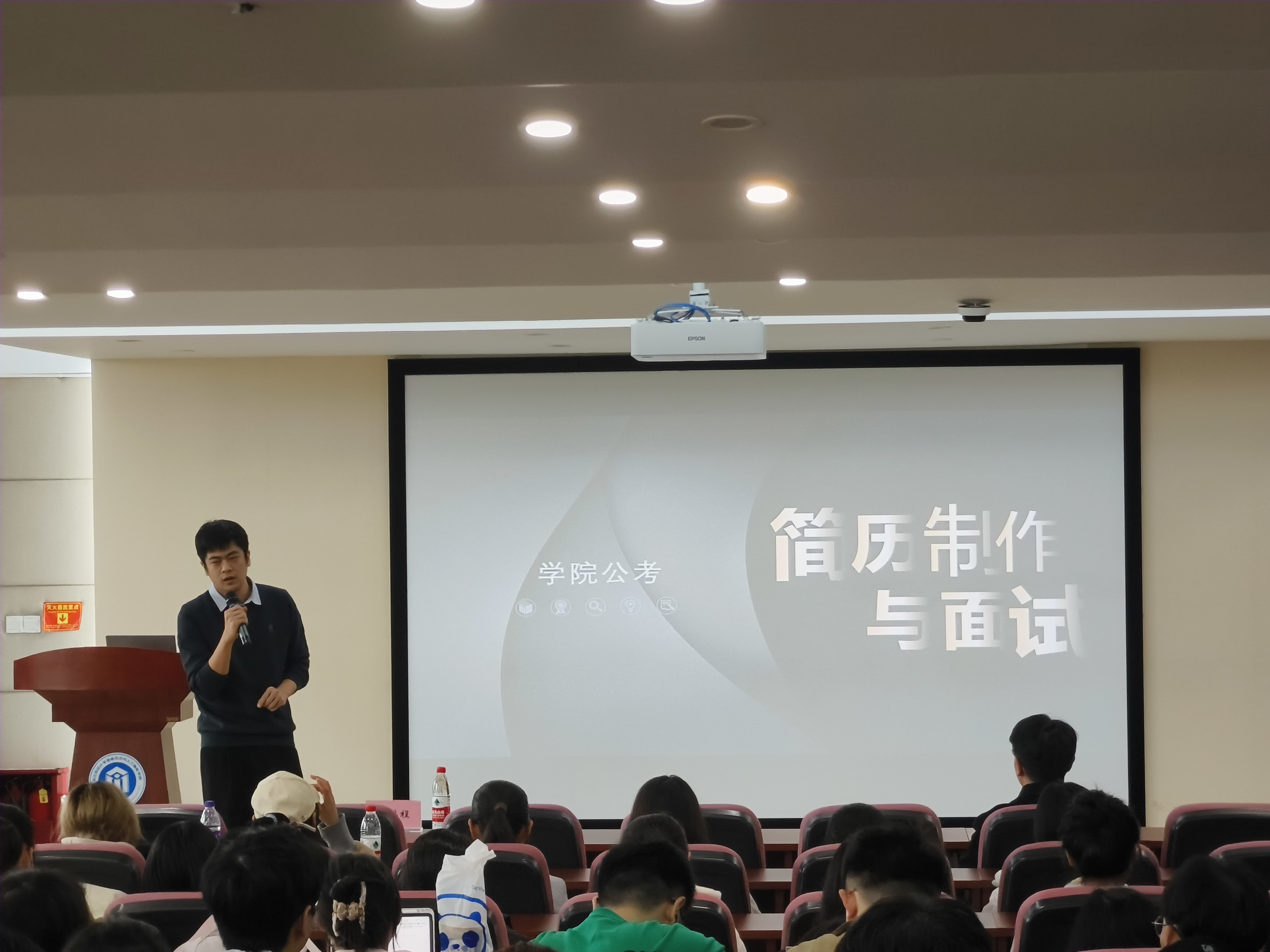 随后,苏老师详细介绍了求职面试的注意事项和技巧,并提醒同学们提前做好学业规划乃至更长远的职业规划,更要立足当下,学好每一堂理论课,扎实自己的专业基础,未来能够有的放矢。
