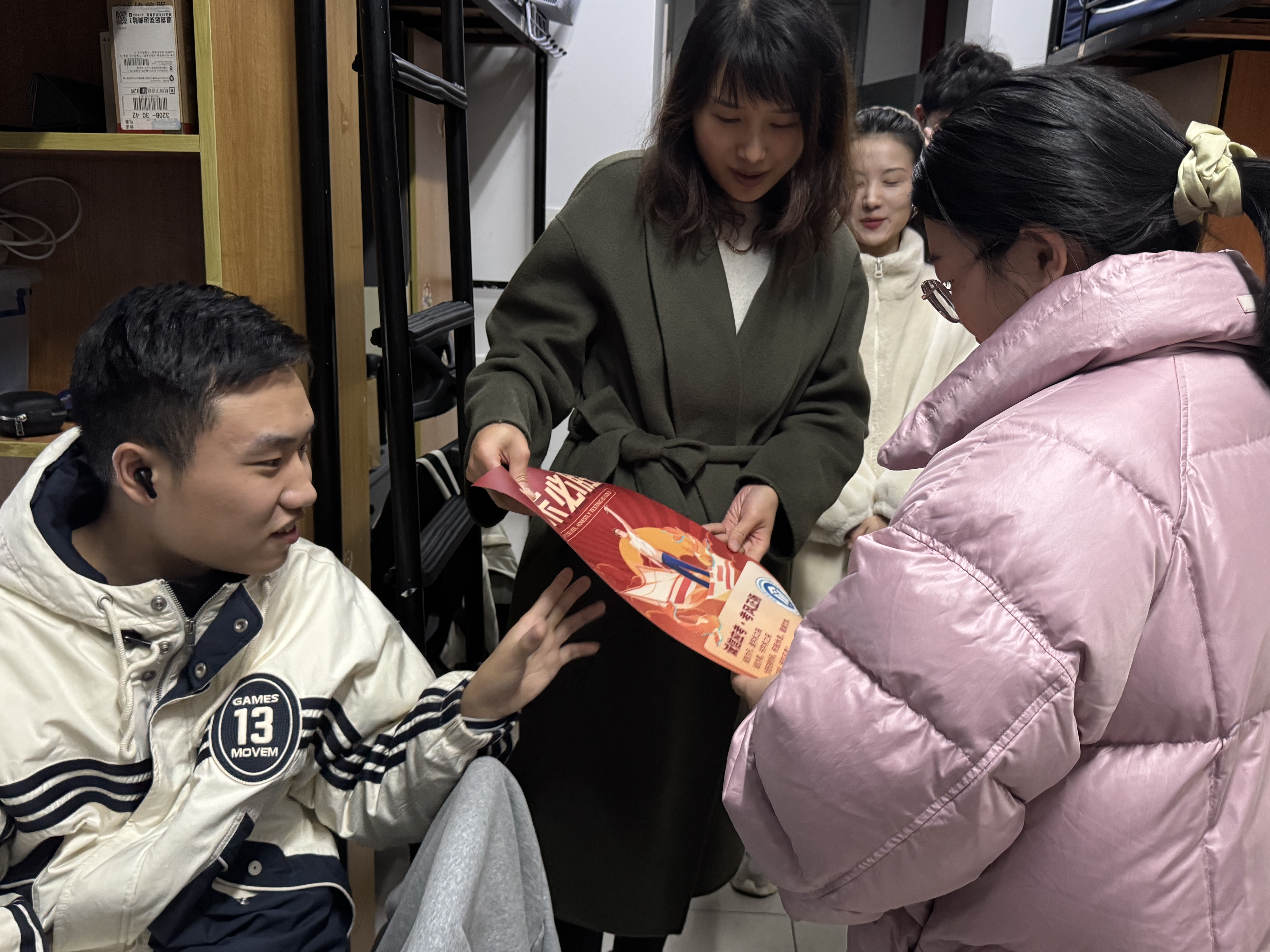 走访中,老师们不仅关心同学们的日常生活,更将学风教育、考试诚信教育及安全教育融入其中,与同学们面对面交流互动。