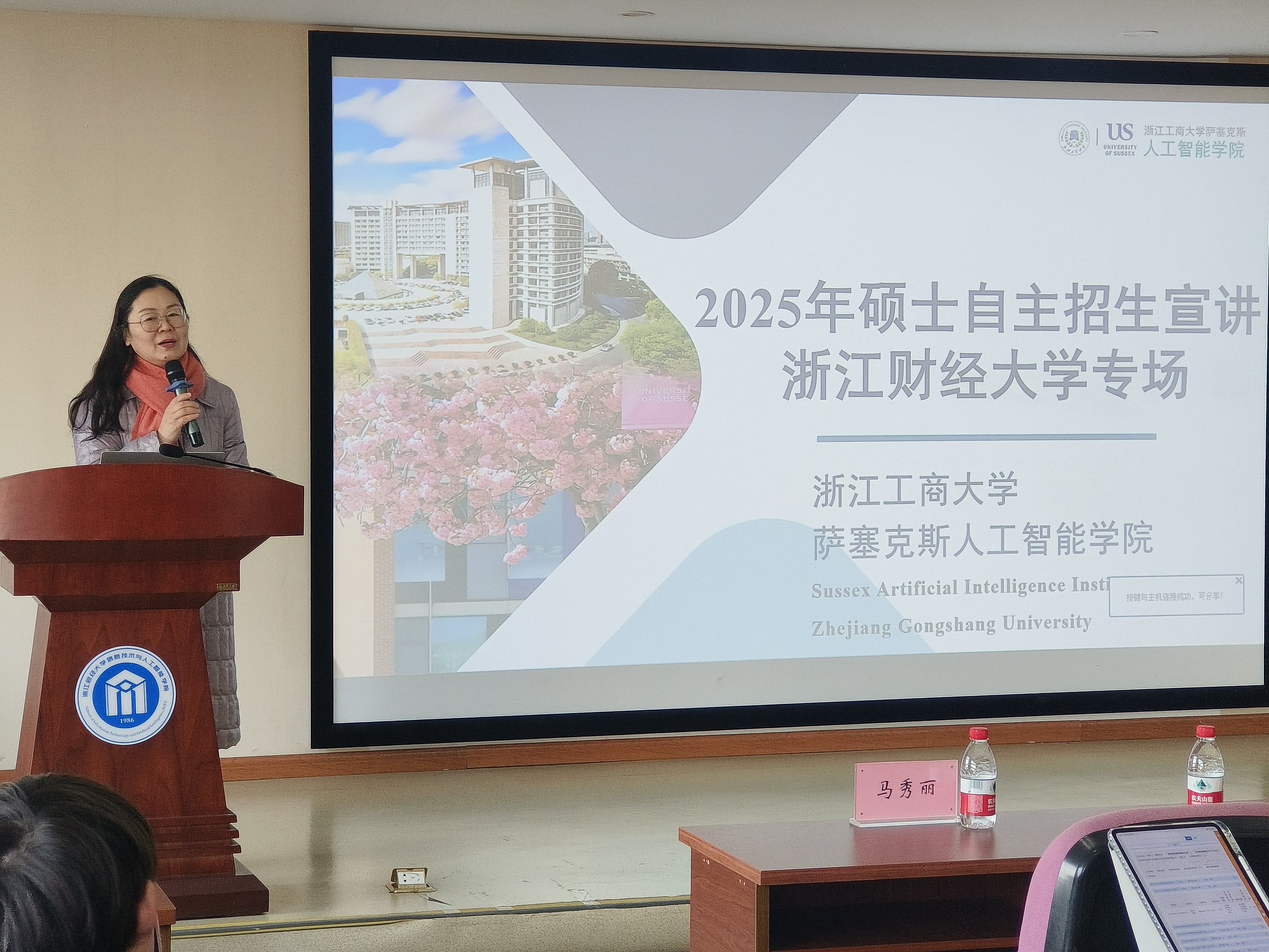 讲座中,马秀丽老师全面而细致地介绍了当前的考研形势,随后介绍了浙江工商大学萨塞克斯人工智能公司,分享中外合作办学硕士研究生项目与国内考研的异同,包括报考条件及优势。讲座中,马老师通过提问等方式与同学们互动交流,加深同学们对本次宣讲的了解,并为同学们送上小礼物。最后,马老师鼓励同学们认真完成当下学业,并尽早做好学业规划。