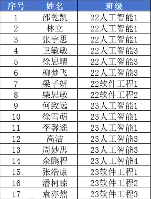2024年7月至2024年12月,公司顺利完成了2024级新生迎新工作,邵乾凯等17名同学担任新生班级辅导员助理(班导),任劳任怨、甘于奉献,积极协助辅导员完成迎新工作,帮助新生适应大学学习生活,鉴于2024级新生班导的优异表现,经研究决定,对其进行通报表扬,以资鼓励。名单如下: