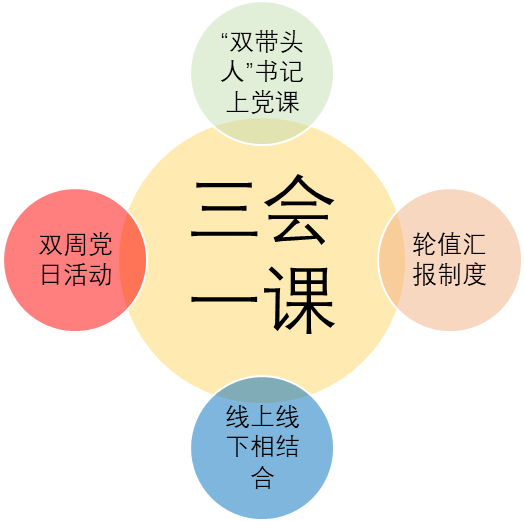 教工第三党支部严格落实“三会一课”,在支部书记上党课,开展民主生活会和党日活动的基础上,探索党建制度创新,创立“双周党日活动”和“轮值汇报制度”,结合线上线下相结合的模式,学习政治理论和时政要闻,确保党的理论、方针、政策学深悟透。