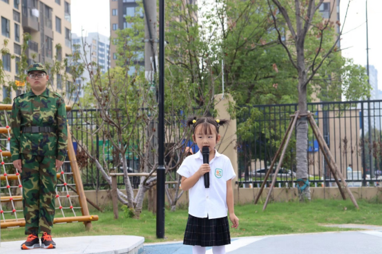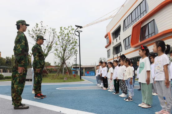 第二项党日活动项目为教小朋友们站军姿。两脚分开六十度、两手下垂贴紧、收腹、挺胸、抬头的组合动作教育他们军人般的坚持努力,传递党日活动的互助精神。