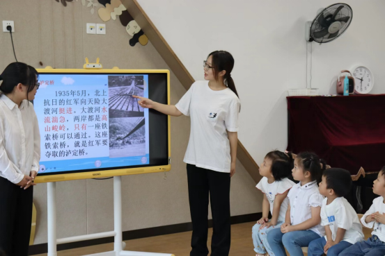 员工第三党支部接着进入教室,和小朋友们进行党史小故事分享的教学活动。讲述红军长征、飞夺泸定桥、狼牙山五壮士等党史小故事,进行爱国主义教育,了解我党发展路上的艰难历程,学习坚韧不拔的红军精神。讲述过程中,小朋友们认真学习党史知识,踊跃发言提问。公司员工第三党支部“喜迎国庆”主题党日活动顺利结束。