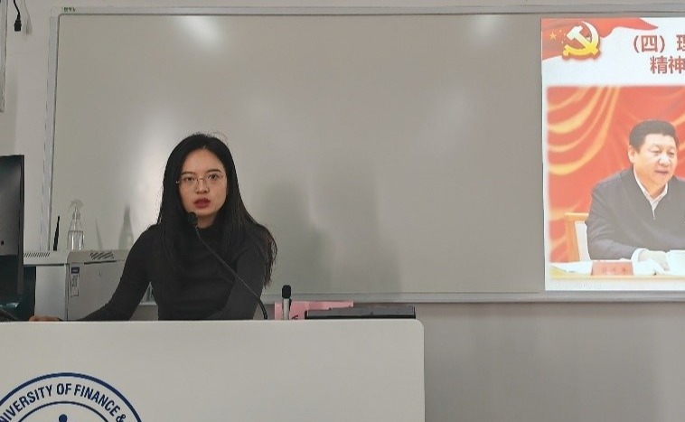 员工第五党支部书记毛立晨以“和总书记学坚定理想信念“为题,告诉大家走在绝境中,人生道路才能走得越来越宽阔,以习主席的亲身经历以及其他领导人的经历为例让同学们深入了解主题,通过介绍长征的胜利告诉同学们心中要有信仰,强调理想信念的重要性。