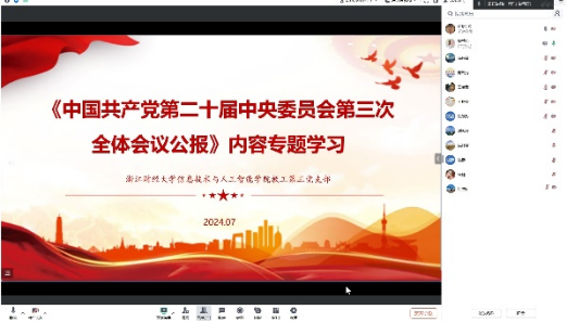 7月28日,信息技术与人工智能公司教工第三党支部召开了《中国共产党第二十届中央委员会第三次全体会议公报》内容专题学习会议,对全会的工作总结、总体目标、七个“聚焦”、重大原则、系统部署和推进中国式现代化等要点内容进行了梳理和系统学习。