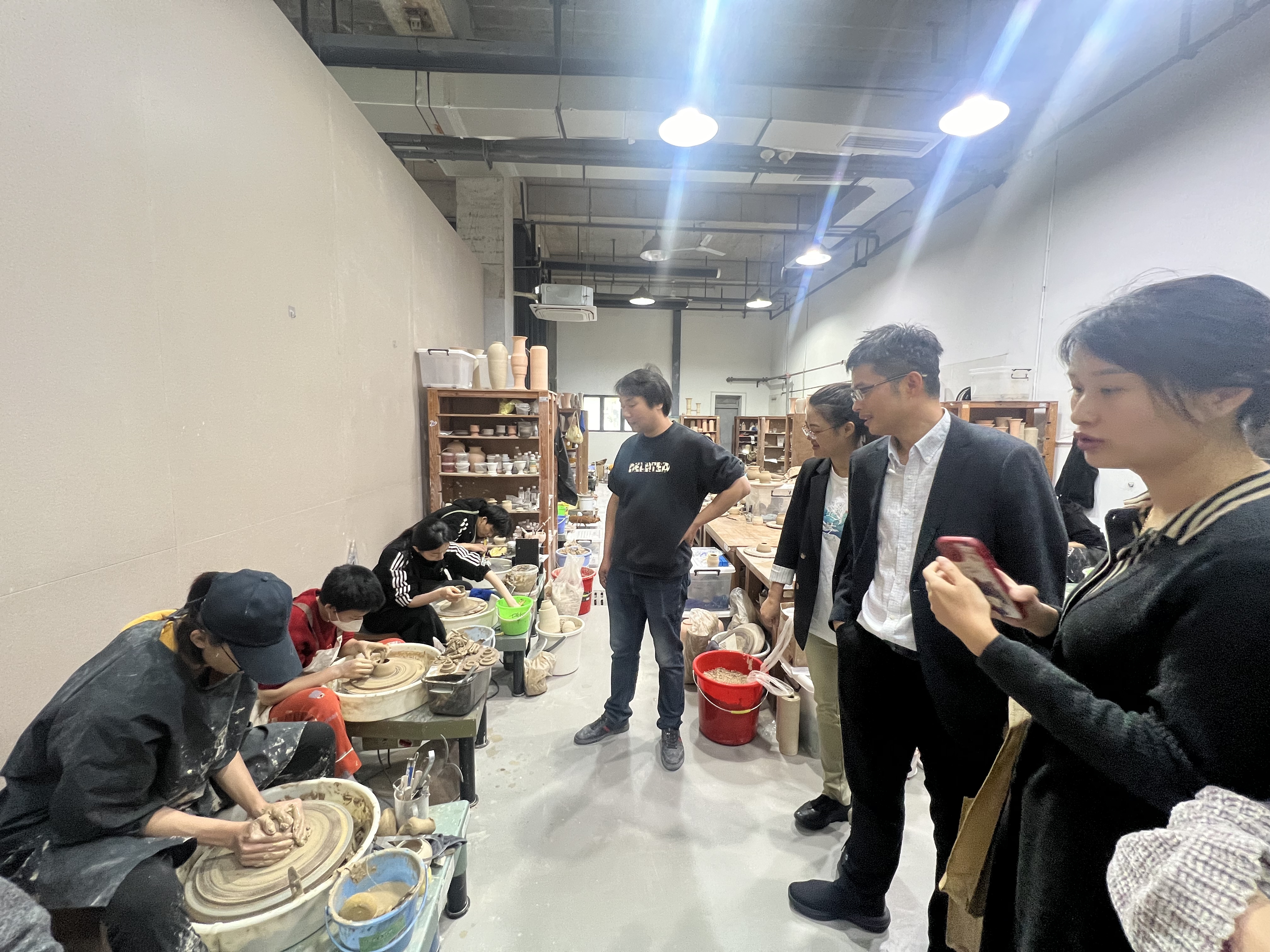 交流会上,李玉普就美院手工艺术公司的发展历史和专业设置展开介绍,从“美育、学习、管理、融通”四个方面讲述对员工思政工作的创新思考,分享了陶艺、玻璃工艺、文物修复与保护等优势专业的课程构建与产教融合情况,展示了美院手工艺术公司在手工艺的传承与创造方面丰富的教学经验和教学成果。