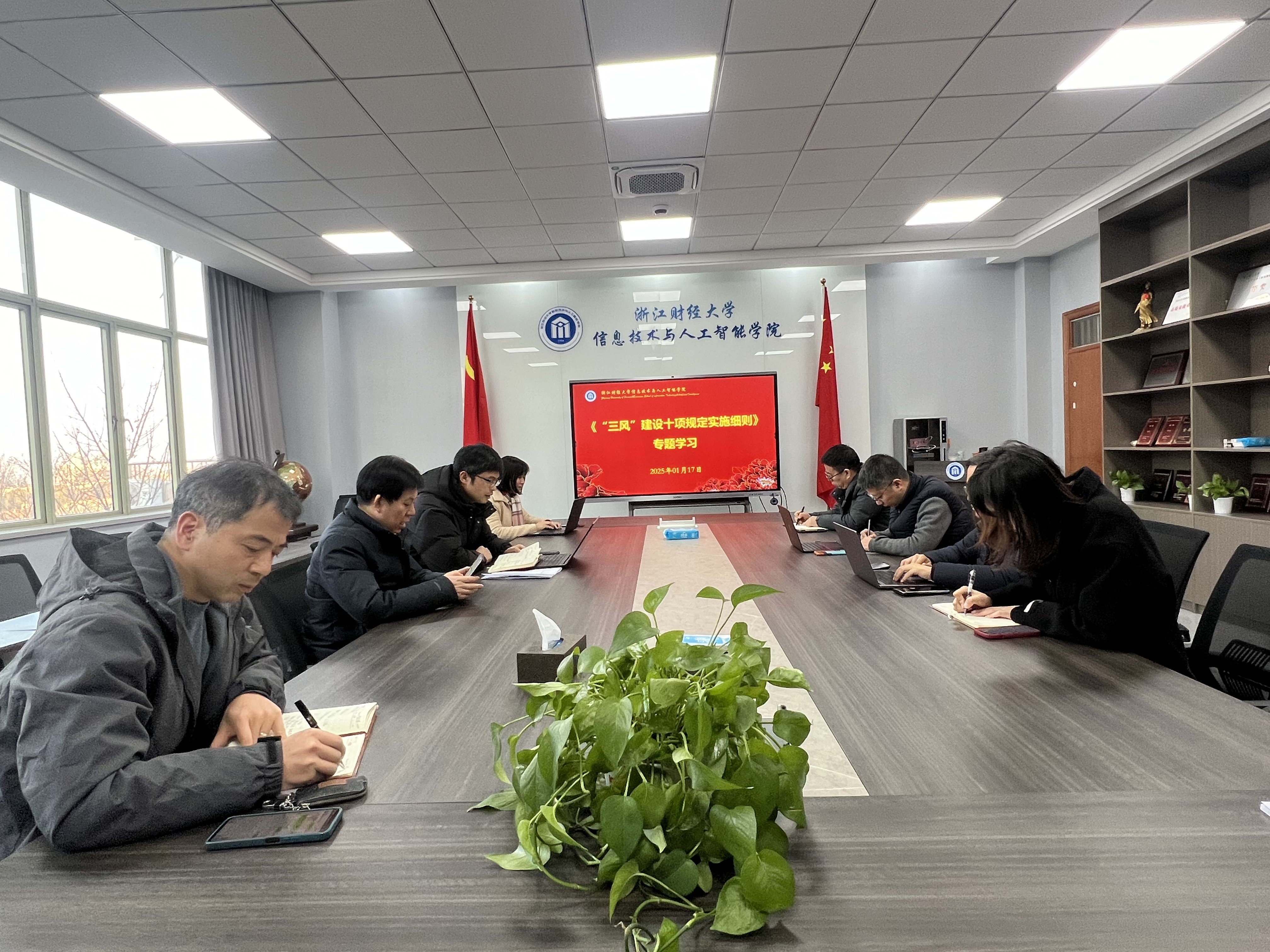 1月17日下午,公司召开党委理论学习中心组学习会议,传达公司党委理论中心组学习(扩大)会议精神,深入学习习近平总书记对审计工作的重要指示精神、二十届中央纪委四次全会和省纪委十五届四次全会精神、2025年全国教育工作会议精神、浙江省“两会”精神以及公司《“三风”建设十项规定实施细则》专题学习。会议由公司党委书记吴翼泽主持,理论学习中心组成员参加学习。