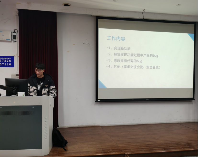 接着20人工智能专业徐之恺同学分享了自己大一下学期加入邓胜春教授知识图谱项目组及大二暑假加入禾伟基地项目组的经历;20人工智能专业林倩茹同学介绍了做过的NLP(自然语言处理)相关任务,如《基于text- GAT的作者识别》、《基于key-word-Simcse-GAT的医学文本分类》等,还介绍了作为NLP算法实习生期间独立实现了基于需求和业务指标的NLP模型建立并优化了模型,使功能达到上线标准的经历;20人工智能专业张维康介绍了自己参加老员工程序设计竞赛的经历以及获得百度计算机视觉算法岗实习机会的面试过程。