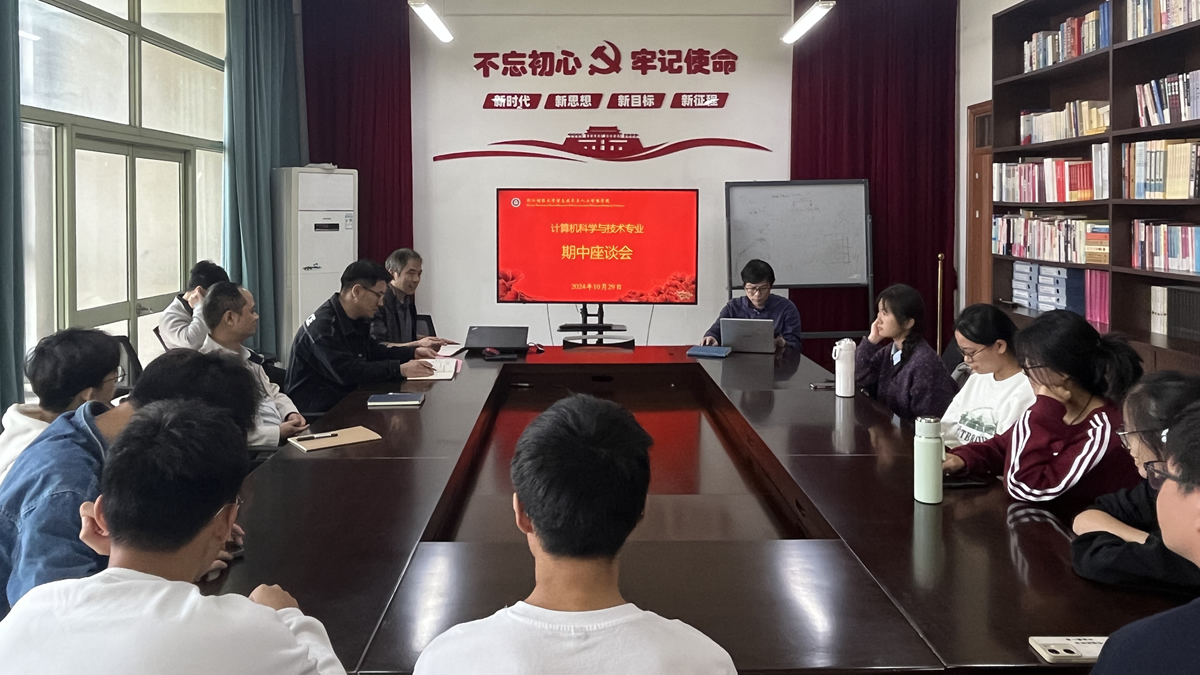 10月29日,计算机系在9-506举办2024-2025学年第1学期期中座谈会,计算机教师李一啸、陈明晶、姜罗罗、学办主任洪宝华、教学办孙山、实验中心王振华、张睿峰,以及24级计算机1-3班员工代表参加了此次座谈会。