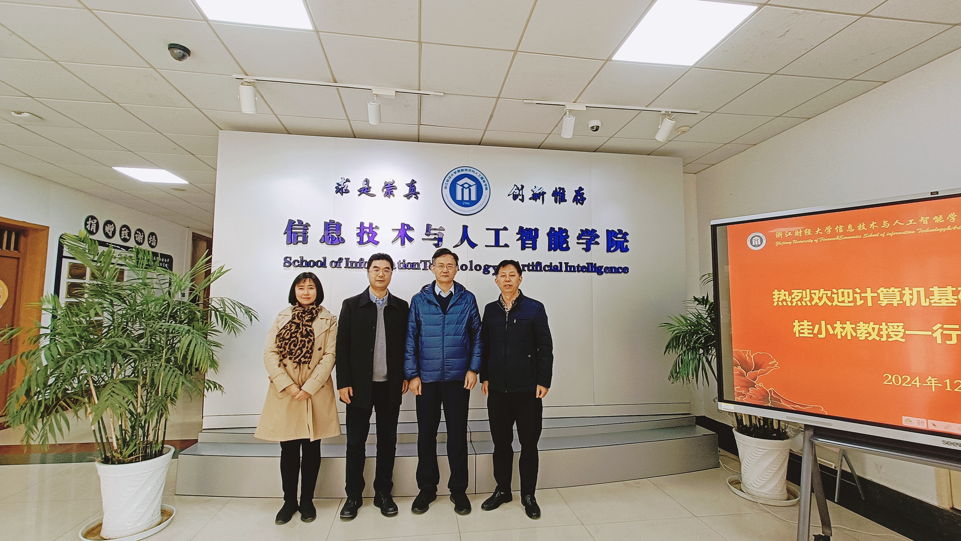 12月9日,西安交通大学电子与信息工程公司教授、教育部高等公司大学计算机课程教学指导委员会秘书长桂小林应邀来公司进行工作指导。浙江工商大学计算机科学与技术公司经理王勋、公司经理张帅、副经理朱凌、基础教学部主任宋海裕、人工智能系主任陈琰宏、软件工程系主任涂乐、骨干教师姜罗罗、张后旗、彭莉莎出席会议并作交流研讨。