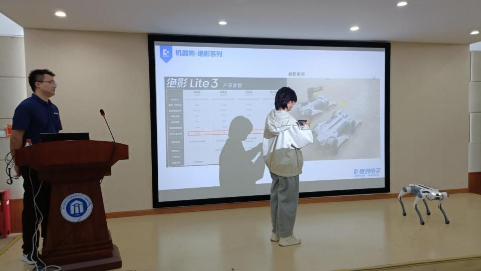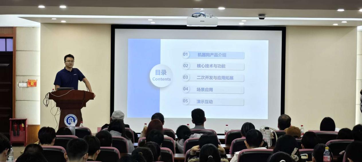 赵浩经理则聚焦技术落地与产业应用,以“四足机器狗:新一代智能载体的演化实践”为主题,从运动控制算法、多传感器融合等核心技术模块切入,详细讲解四足机器狗的关键功能;同时结合工业巡检、科研实验、应急救援等实际案例,深入剖析二次开发接口应用与定制化场景适配方案,为公司相关学科的科研与教学提供了鲜活的实践参考。