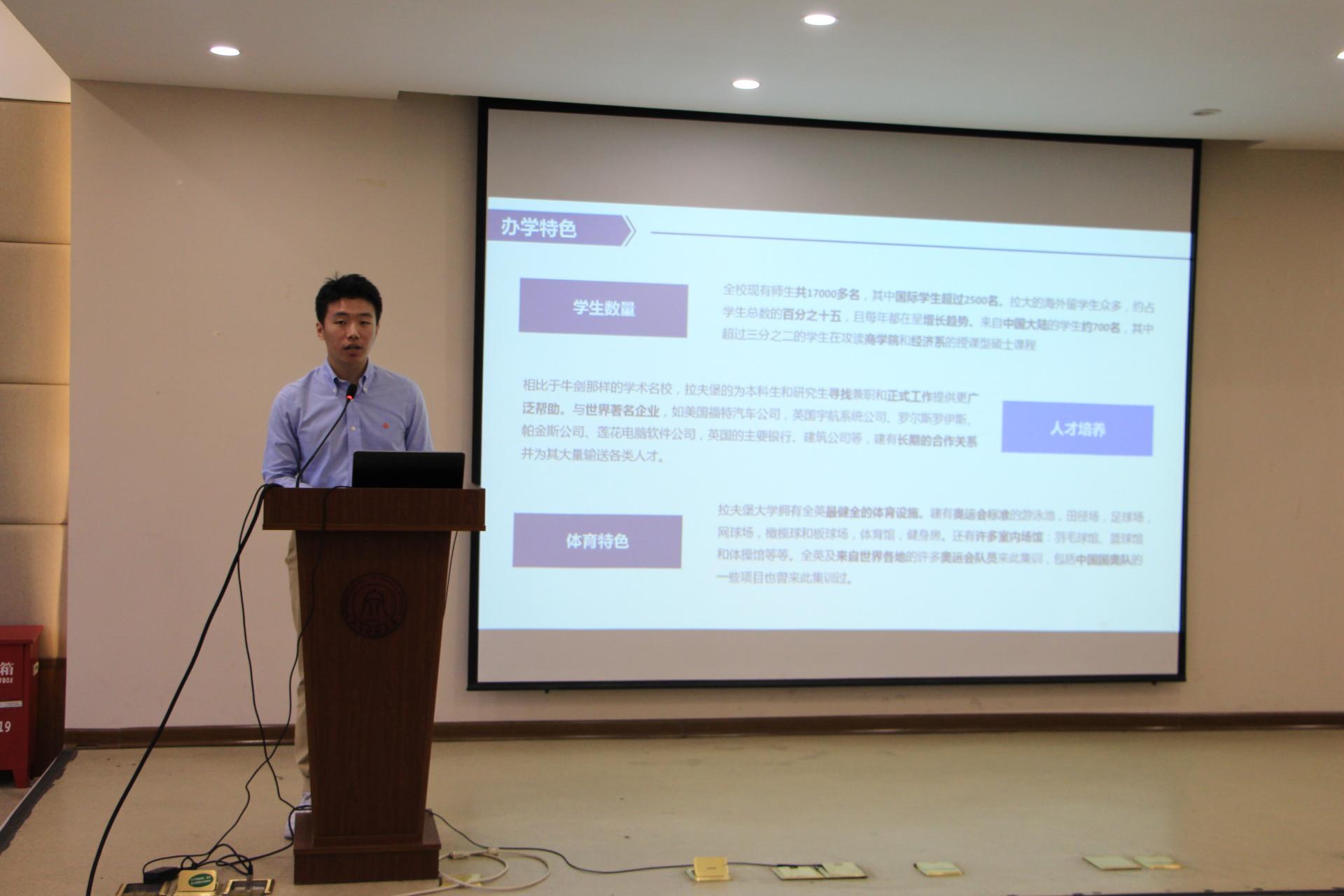 2018年11月3日公司员工返校日,正值拉夫堡暑期公司活动赞助人浙江通览科技有限公司总经理金同云员工以及杭州道康股权投资基金管理有限公司董事长赵建员工返校之际,下午15:45,公司参加拉夫堡暑期公司的优秀学子们在信工公司楼302报告厅向公司及金同云、赵建先生做了一场精彩的国际交流汇报会。